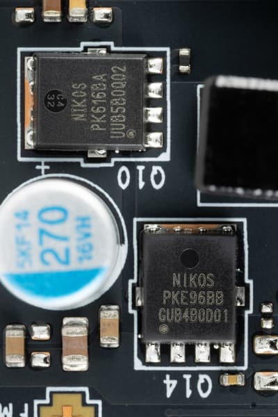 В преобразователе питания микросхем памяти используются полевые МОП-транзисторы — PKE616BA/PKE96BB компании Niko Semi, рассчитанные на 50 А.