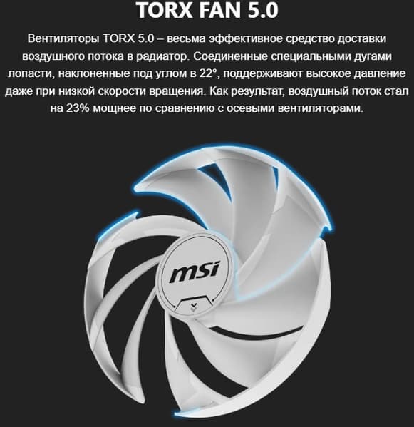 Поверх радиатора установлен кожух с двумя вентиляторами Torx 5.0 ∅100 мм, имеющими по 9 лопастей.