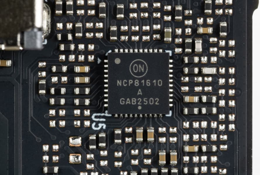 4 фазами питания ядра управляет ШИМ-контроллер NCP81610 (On Semiconductor). Он рассчитан максимум на 8 фаз.