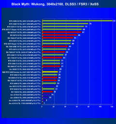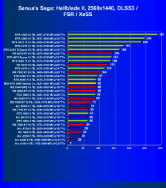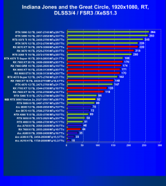 Результаты тестов со включенной аппаратной трассировкой лучей и/или DLSS/FSR/XeSS в разрешениях 1920×1080, 2560×1440 и 3840×2160