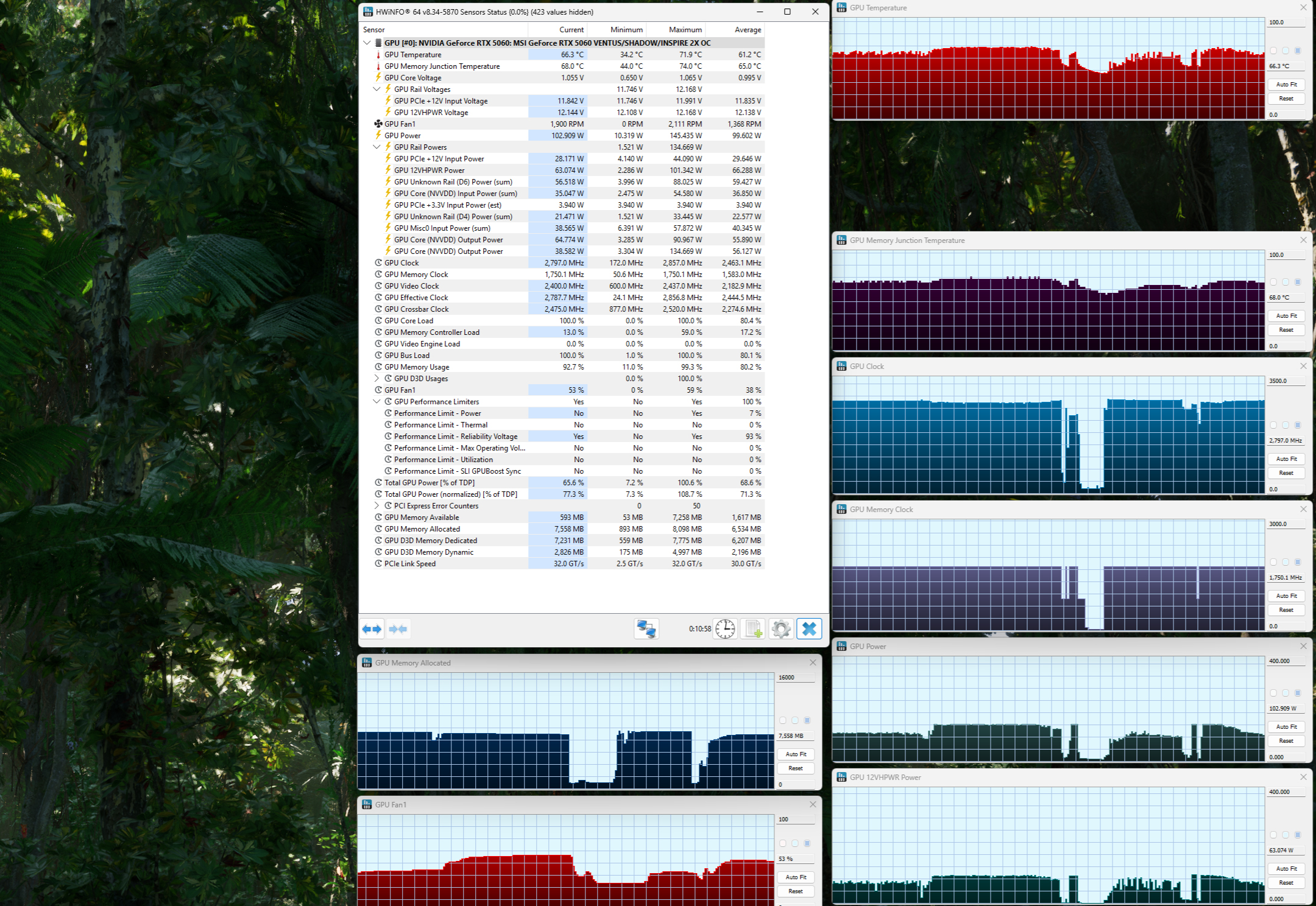 | 02 | MSI RTX 5060 Ventus 2x, 2527—2857 МГц/28 ГТ/с | 410 | 1354 | 33 000 |