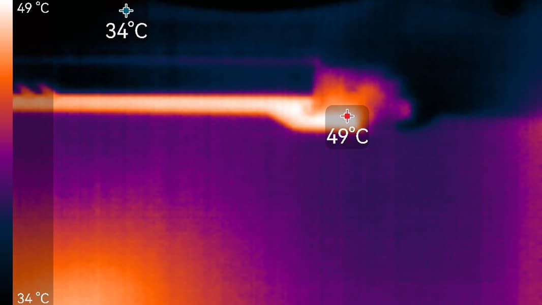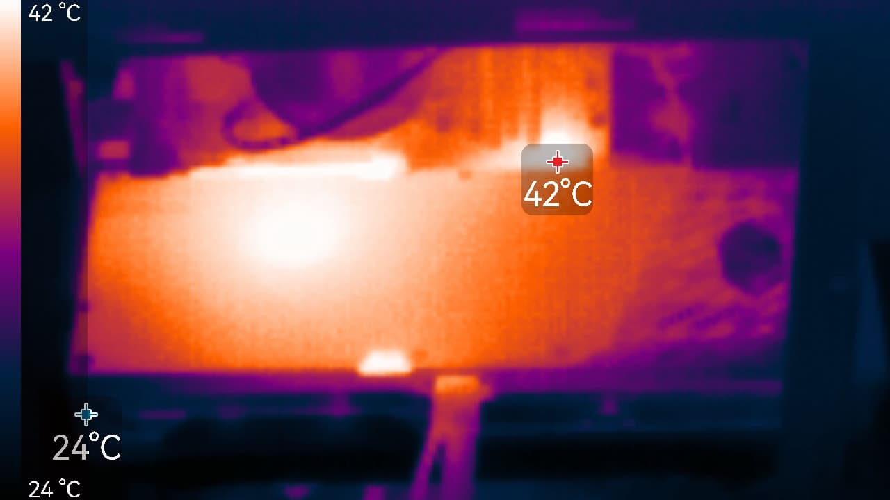 Максимальный нагрев наблюдался в нижней части PCB около разъема PCIe, а также около разъема питания карты.