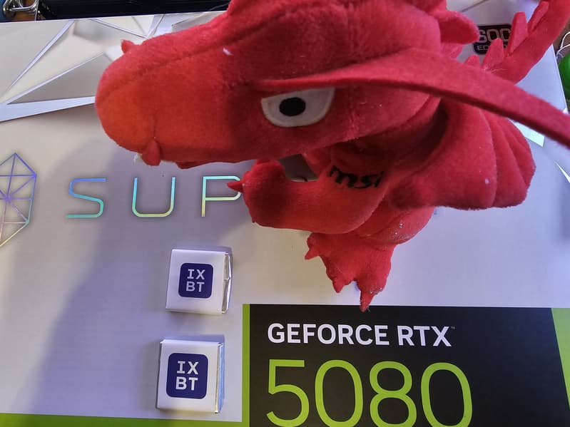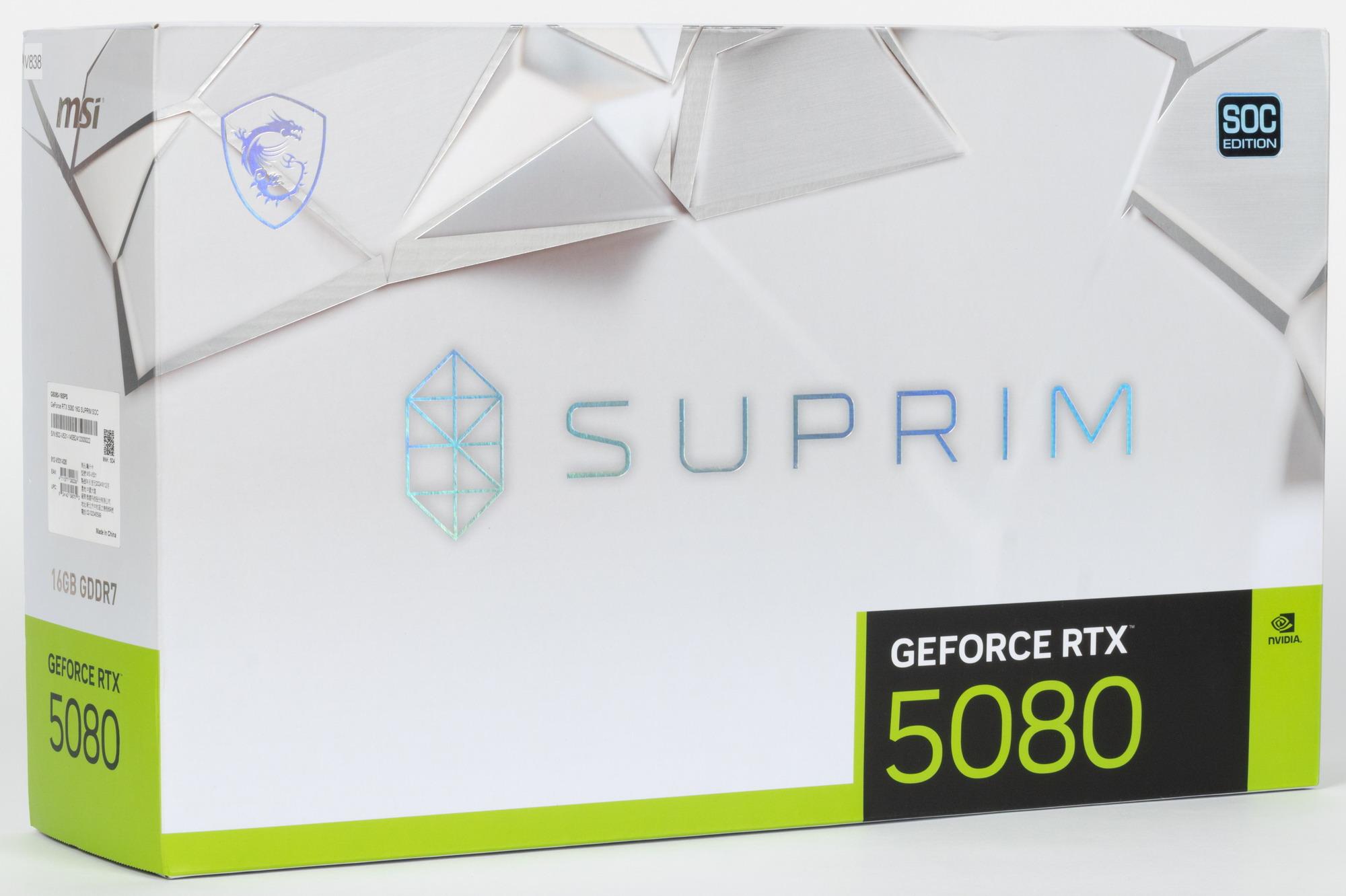 Но эти проблемы локального российского характера кажутся мизерными и пустяковыми по сравнению с еще актуальной глобальной проблемой нехватки графических ядер GB203 и GB202, особенно последних. Как следствие, GeForce RTX 5090 до сих пор распространяются по всему миру крайне малыми партиями, появляются в продаже редко, на Западе их моментально скупают перекупщики, а потом эти карты с накруткой перекочевывают на маркетплейсы (eBay, Amazon и др.). Да и GeForce RTX 5080 выпускается не так много. Тем не менее, карты на базе GeForce RTX 5080 в продаже в России имеются, и самыми доступными на момент подготовки нашего обзора были решения Palit и MSI. В базовом материале по GeForce RTX 5080 мы исследовали карту Palit, а сегодня рассмотрим топового представителя линейки GeForce RTX 5080 у MSI — из серии Suprim.