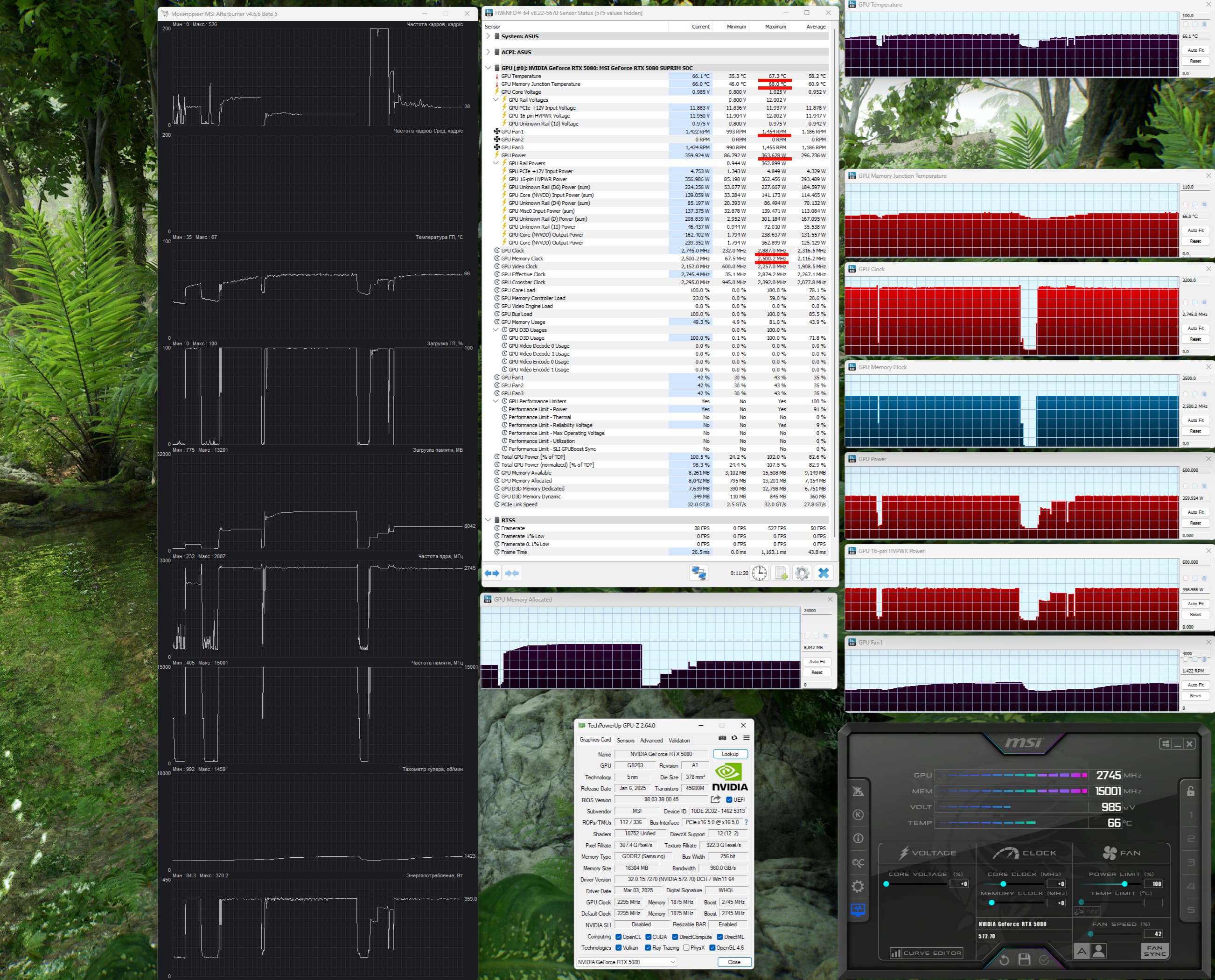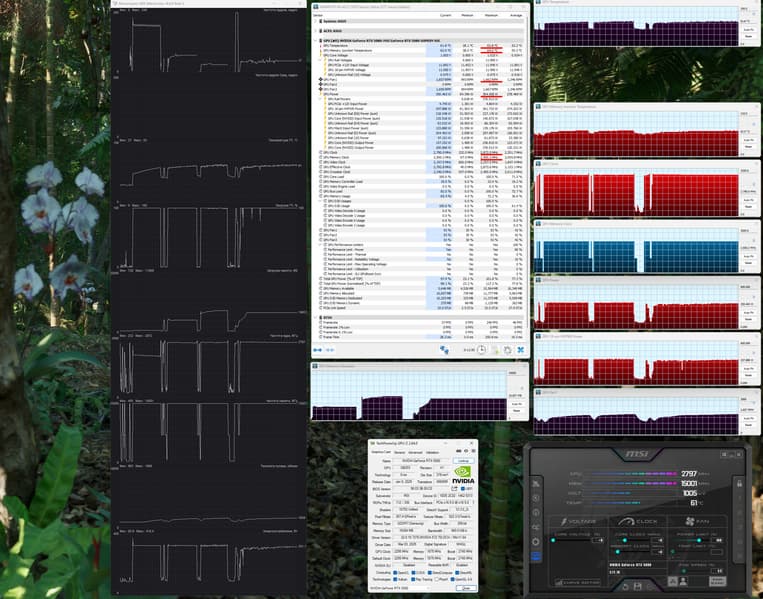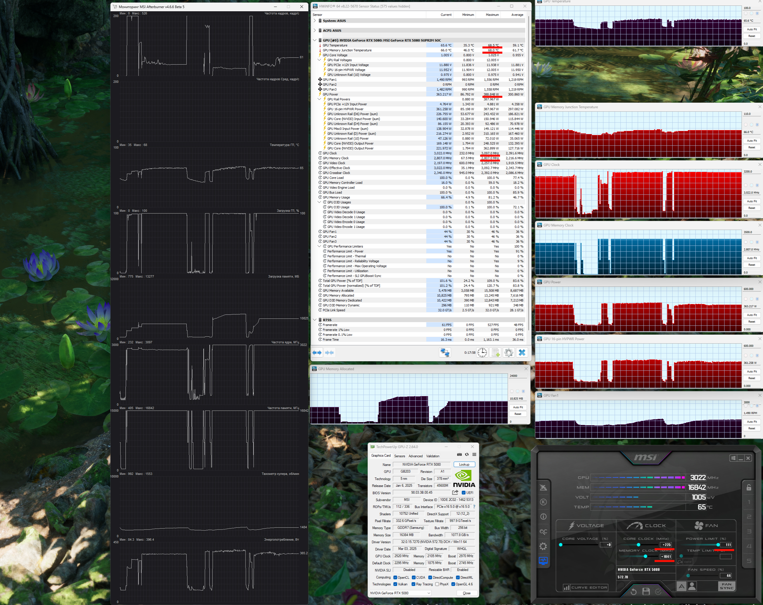 | 05 | MSI RTX 5080 Suprim SOC, 2745—2872 МГц/30 ГТ/с | 806 | 14113 | 175 000 |