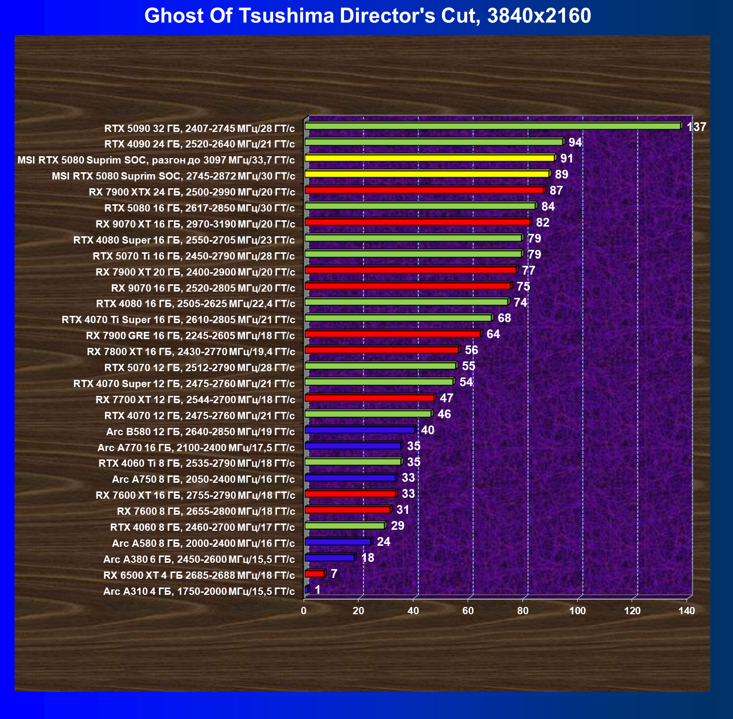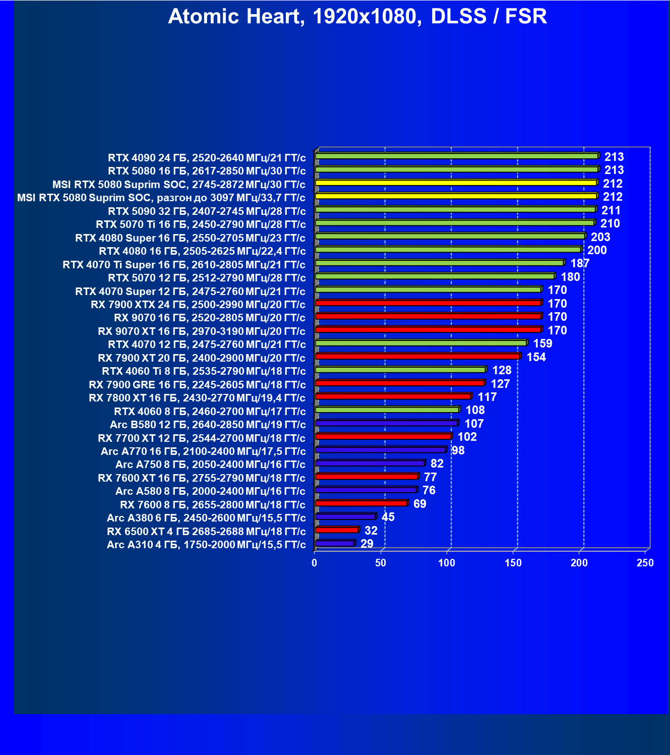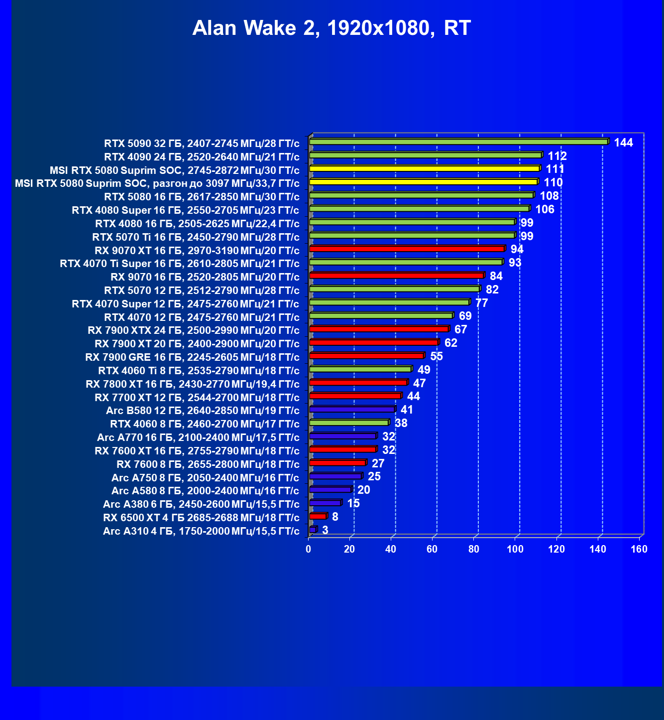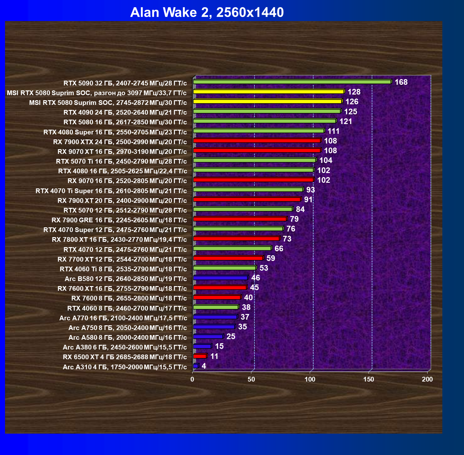 | 03 | MSI RTX 5080 Suprim SOC, 2745—2872 МГц/30 ГТ/с | 14113 | 806 | 175 000 |