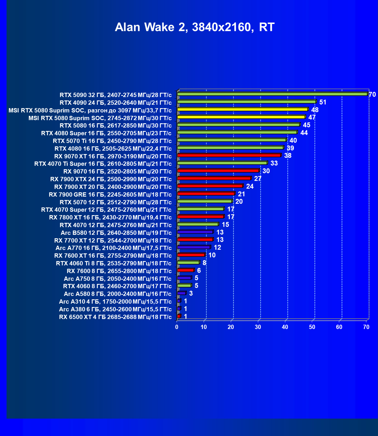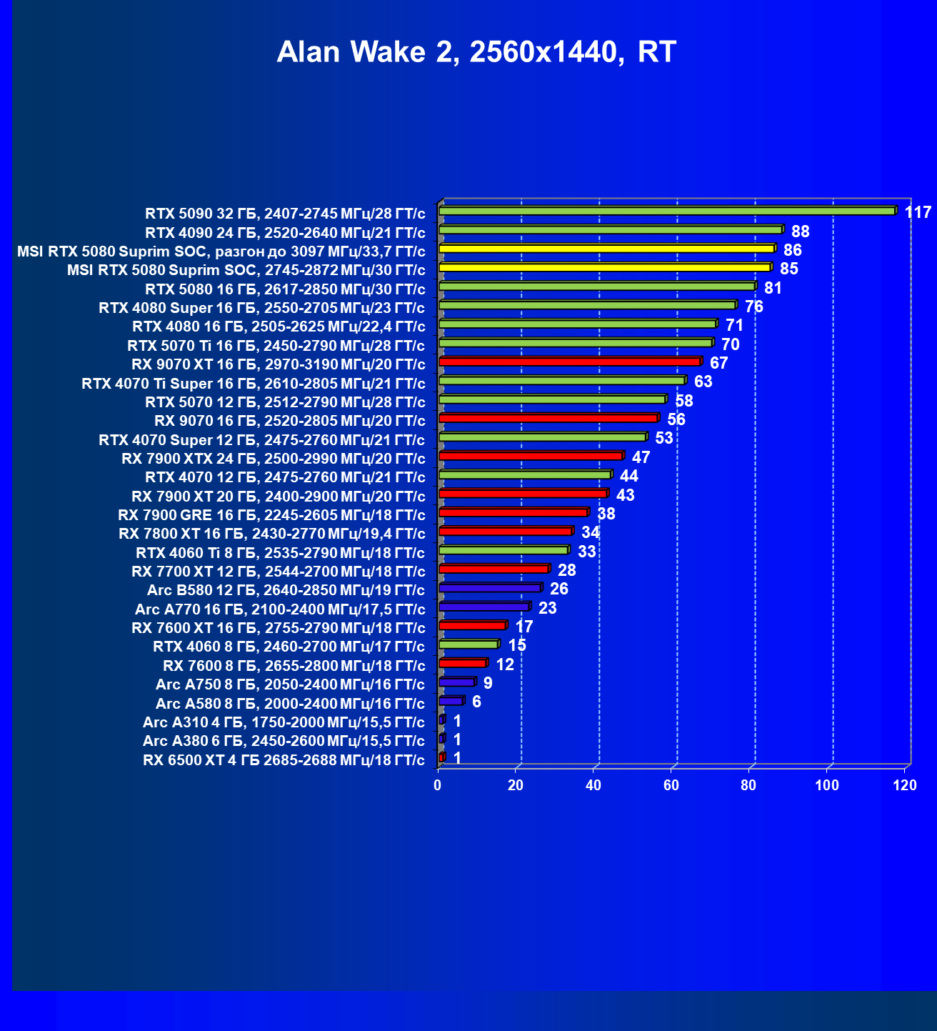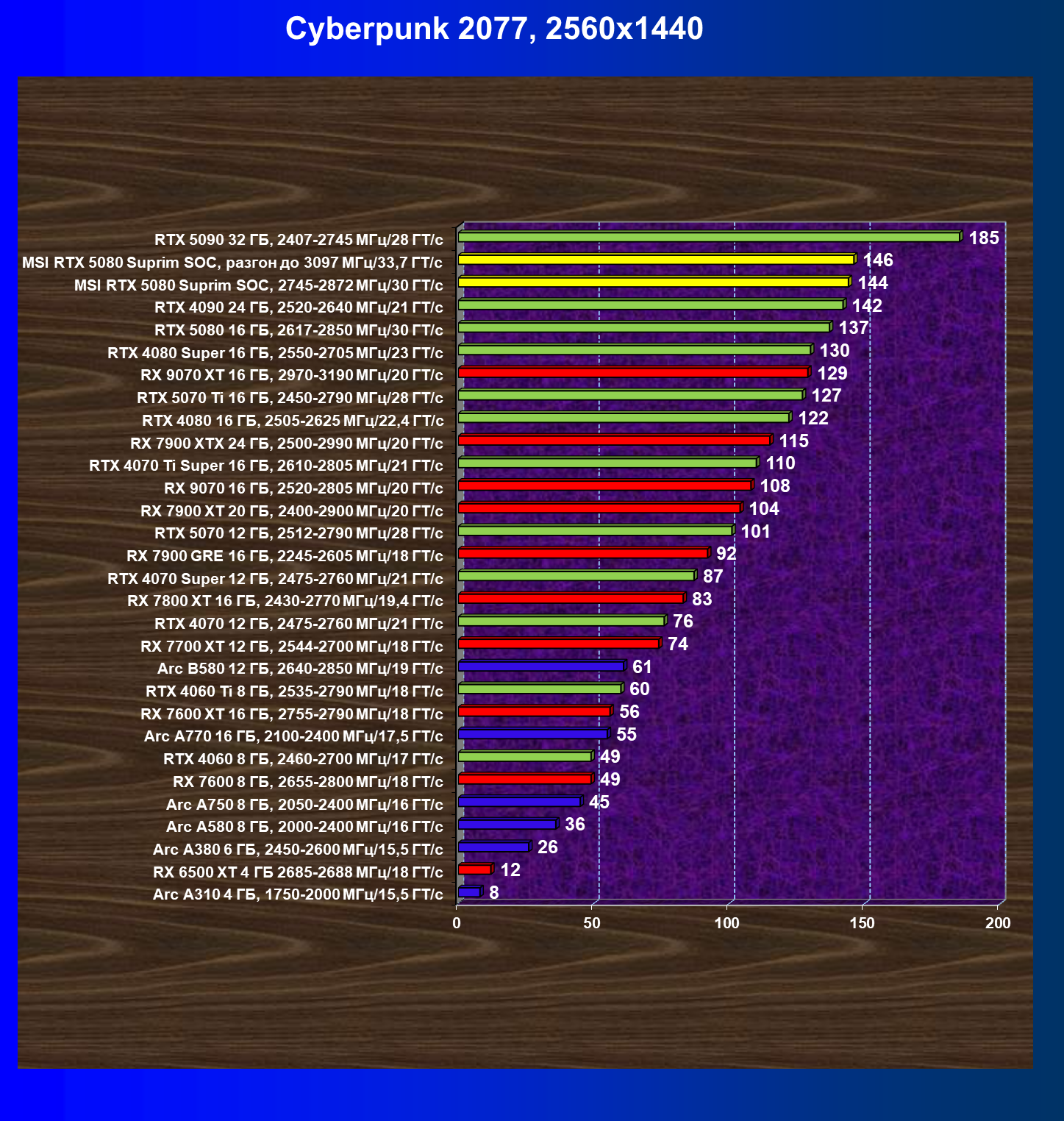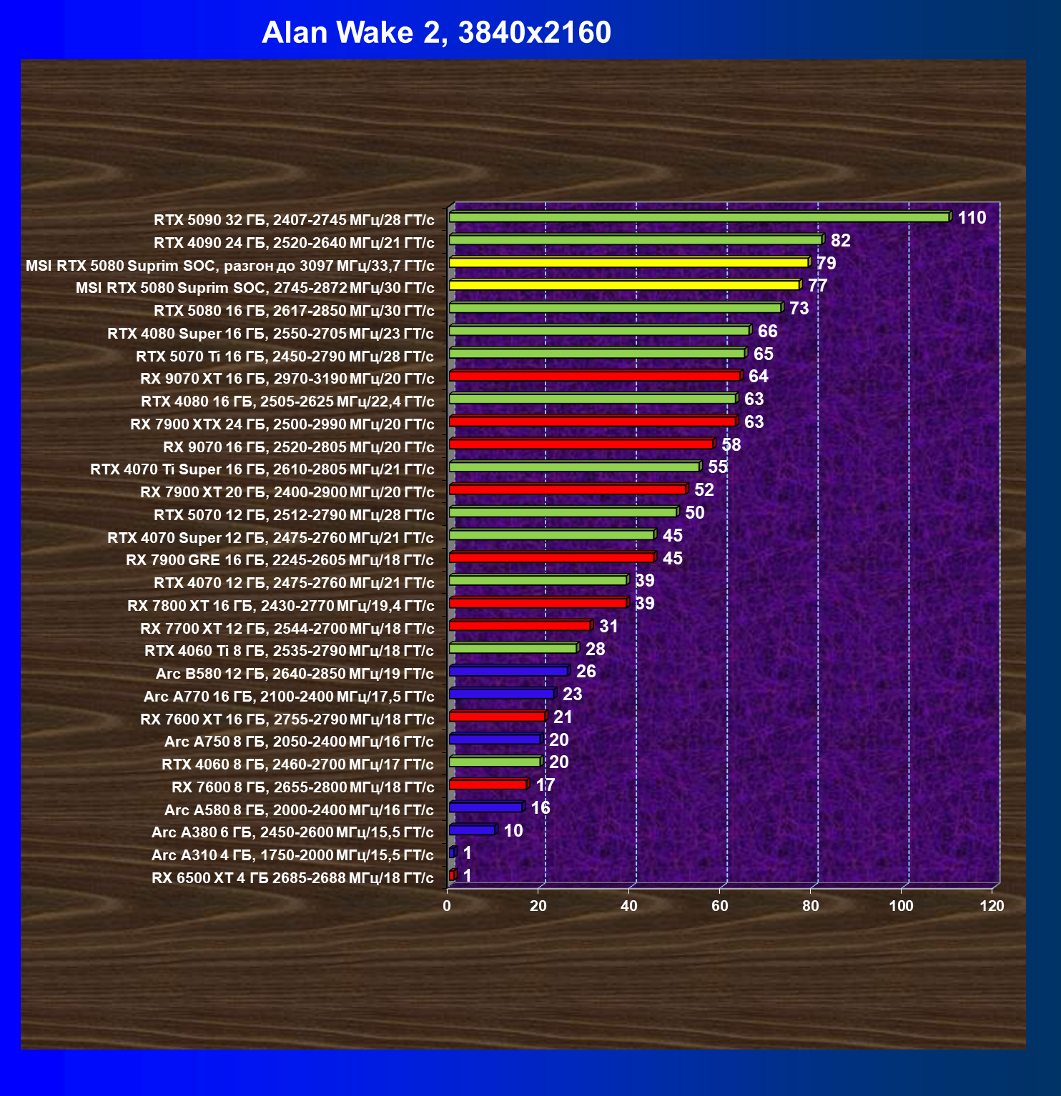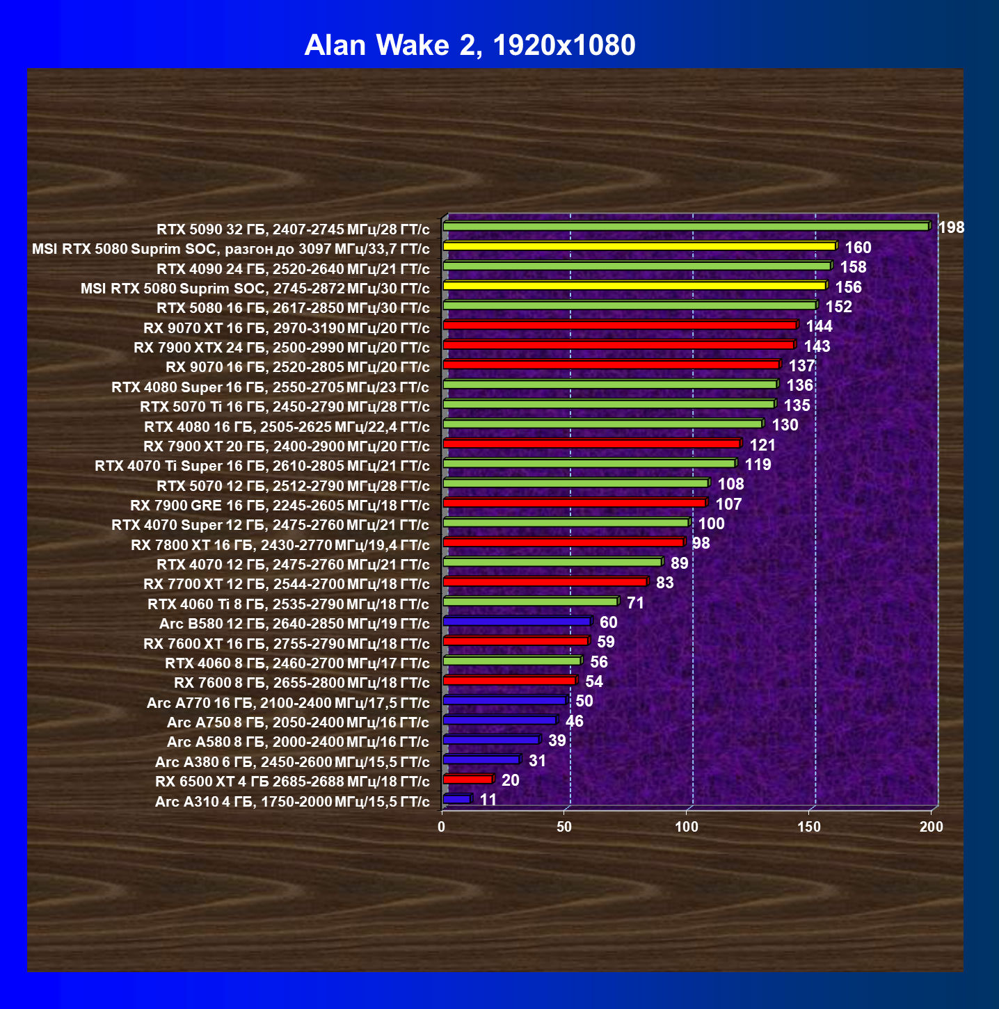| 03 | MSI RTX 5080 Suprim SOC, 2745—2872 МГц/30 ГТ/с | 14113 | 806 | 175 000 |