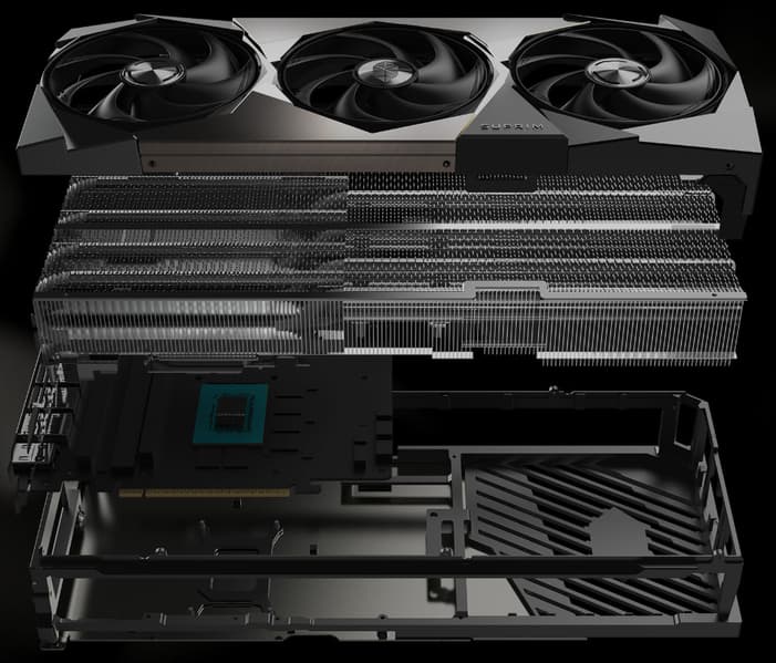 Карта имеет стандартный набор видеовыходов: три DP 2.1b и один HDMI 2.1b.