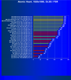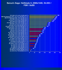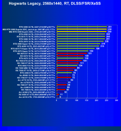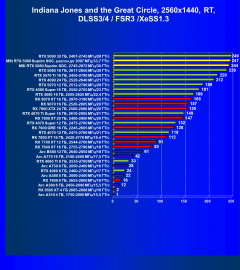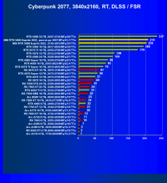 Результаты тестов со включенной аппаратной трассировкой лучей и/или DLSS/FSR/XeSS в разрешениях 1920×1080, 2560×1440 и 3840×2160