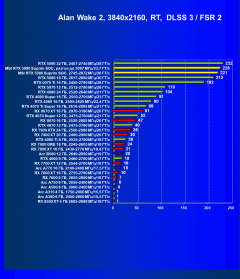Также во все игры можно играть с высокими настройками графики и с трассировкой лучей в разрешениях ниже 4K, а во многих играх — и в 4K, при этом использование динамического масштабирования (апскейлинга) не является необходимым. А использование DLSS (особенно с генератором кадров (frame generator, FG), не говоря уже о multi frame generator (MFG), обеспечит очень неплохую прибавку FPS и даст шанс получить хороший комфорт даже в 8K (правда, в таком разрешении наличие 16 ГБ локальной видеопамяти может стать уже лимитирующим производительность).