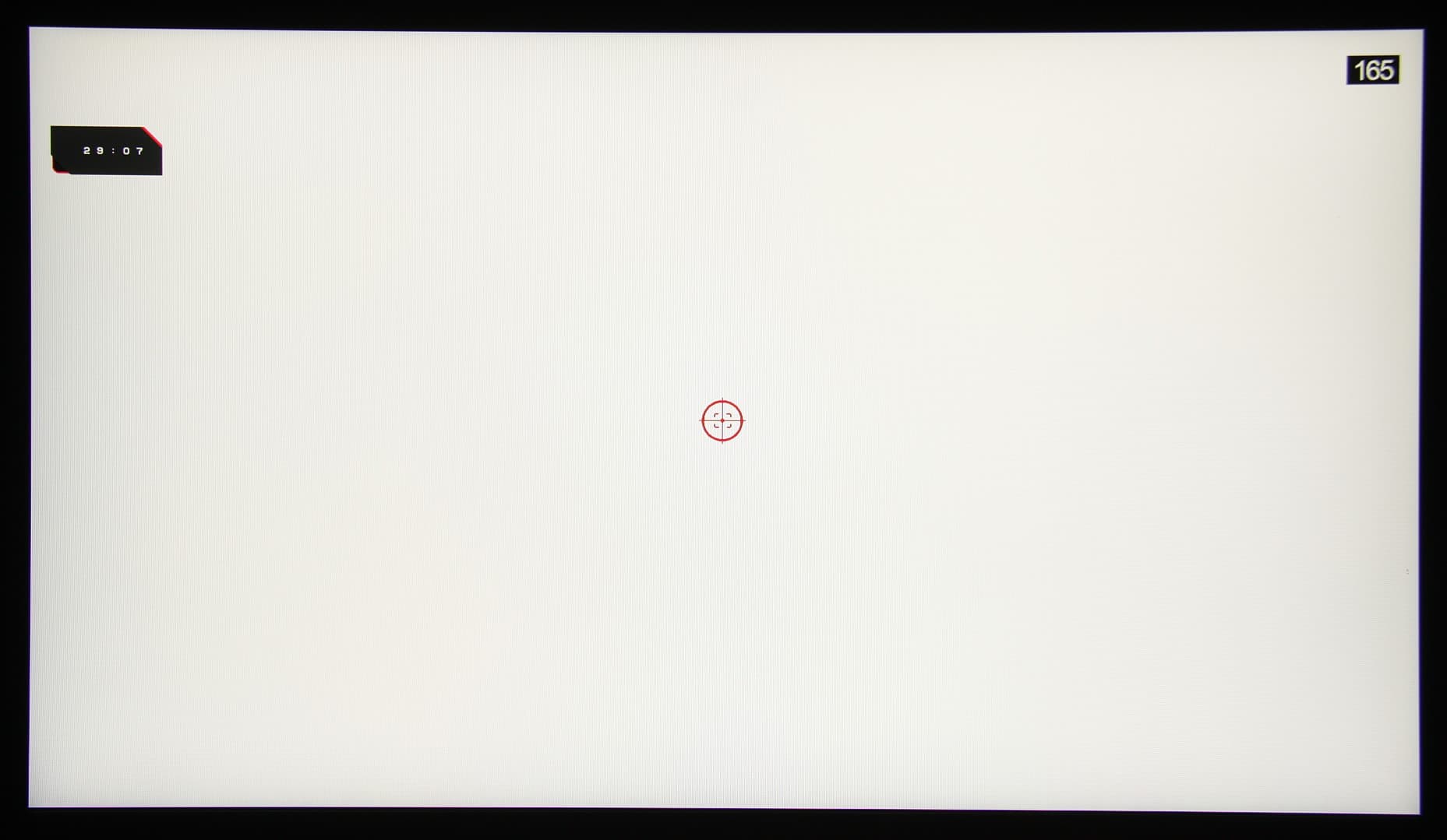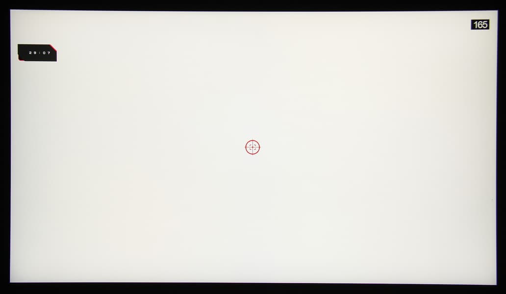 Видно, что даже на минимальном разгоне максимальная яркость белого кадра выше уровня 90% от белого, а минимальная яркость черного кадра опускается сильно ниже 10%. Амплитуда изменения яркости выше 80%, то есть согласно этому формальному критерию скорости матрицы достаточно для вывода изображения с кадровой частотой 165 Гц.