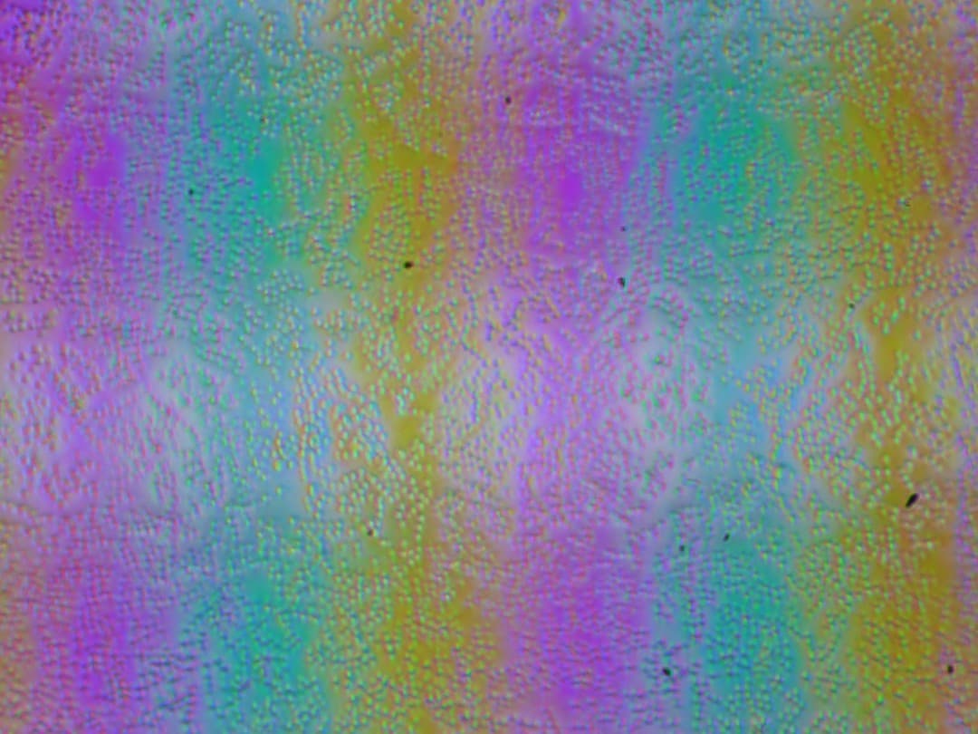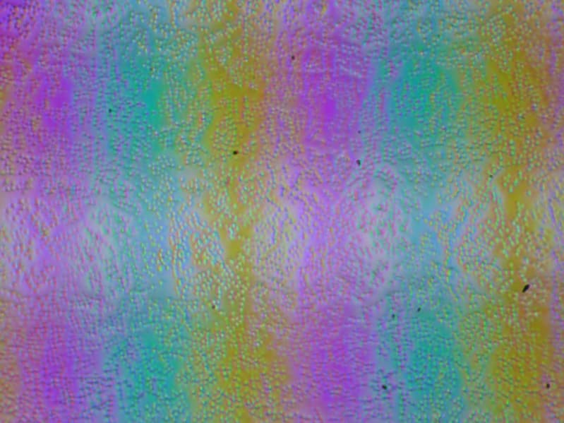 Зерно этих дефектов в несколько раз меньше размеров субпикселей, поэтому фокусировка на микродефектах и «перескок» фокуса по субпикселям при изменении угла зрения выражены слабо, из-за этого нет и «кристаллического» эффекта.