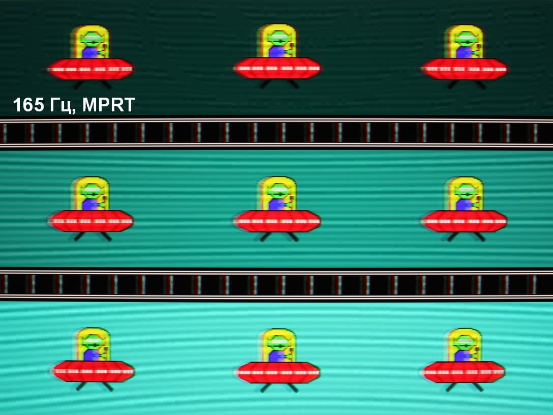 Четкость в движении действительно повышается (и производитель может указывать невероятные 1 мс с оговоркой, что это характеристика четкости в движении — MPRT), но на динамичной картинке появляются артефакты, о чем будет рассказано ниже, а из-за мерцания с частотой максимум в 165 Гц данный режим рекомендуется использовать с осторожностью, так как мерцание может приводить к повышенной утомляемости глаз. Также отметим, что включение этого режима приводит к снижению максимальной яркости изображения.