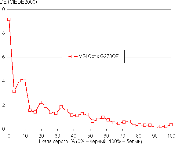 Самый близкий к черному диапазон можно не учитывать, так как в нем цветопередача не так важна, а погрешность измерения цветовых характеристик высокая. Ручная коррекция уменьшила значение ΔE (было 4,9 на белом поле). Впрочем, для игрового применения особой необходимости в коррекции нет.
