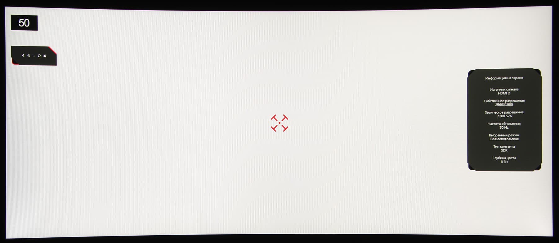 Характер засвеченных участков позволяет предположить, что появились они в основном из-за деформации матрицы в результате ее изгиба. Заметим, что высокая контрастность снижает видимость неравномерности черного поля: ее видно только в темноте при выводе черного на весь экран и после того, как глаза немного адаптируются к темноте. Также неравномерность сильнее видна при взгляде под большим углом к экрану.