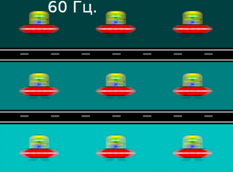 Попробуем представить, что было бы в случае матрицы с мгновенным переключением пикселей. Для нее при 60 Гц объект со скоростью движения 960 пиксель/с размывается на 16 пикселей, при 120 Гц — на 8 пикселей (скорость 960 пиксель/с), при 144 Гц — на 7 пикселей (скорость 1008 пиксель/с), при 200 Гц — на 5 пикселей (скорость 1000 пиксель/с). Размывается, так как фокус зрения движется с указанной скоростью, а объект неподвижно выводится на 1/60, 1/120, 1/144 или 1/200 секунды. Для иллюстрации этого сымитируем размытие на перечисленное количество пикселей: