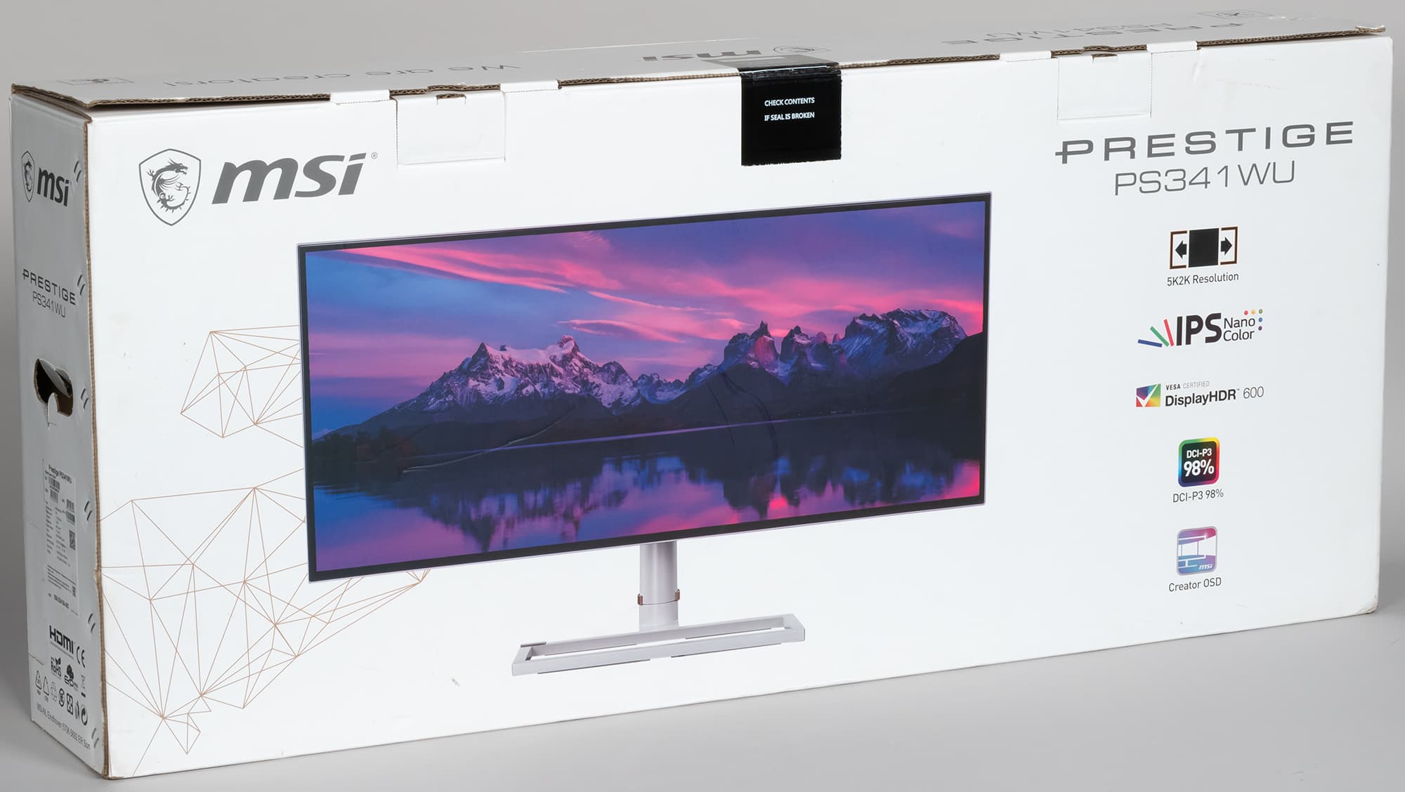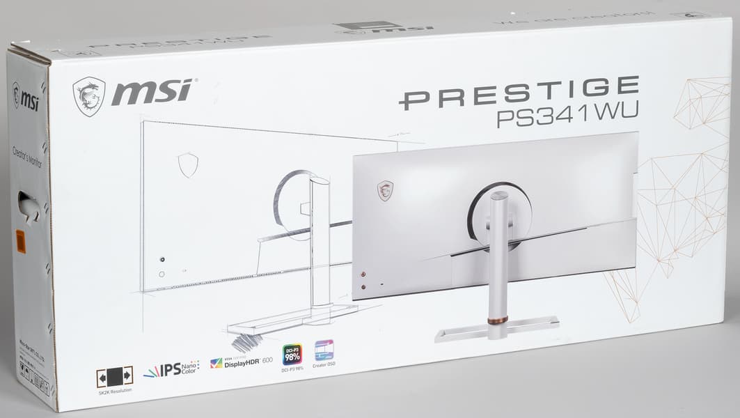 MSI Prestige PS341WU отличается умеренно оригинальным дизайном подставки и задней панели, а также условно безрамочным плоским и сверхширокоформатным экраном большого размера (34 дюйма по диагонали) и высокого разрешения (5120×2160). Монитор имеет хороший набор интерфейсов, расширяющих его функциональность. В целом монитор MSI Prestige PS341WU можно считать универсальным, пригодным для выполнения офисной работы, в том числе связанной с выводом на экран очень большого количества информации, для работы с графикой, с системами CAD/CAM и для видеомонтажа, для игр и для просмотра кино, в том числе в режиме HDR.