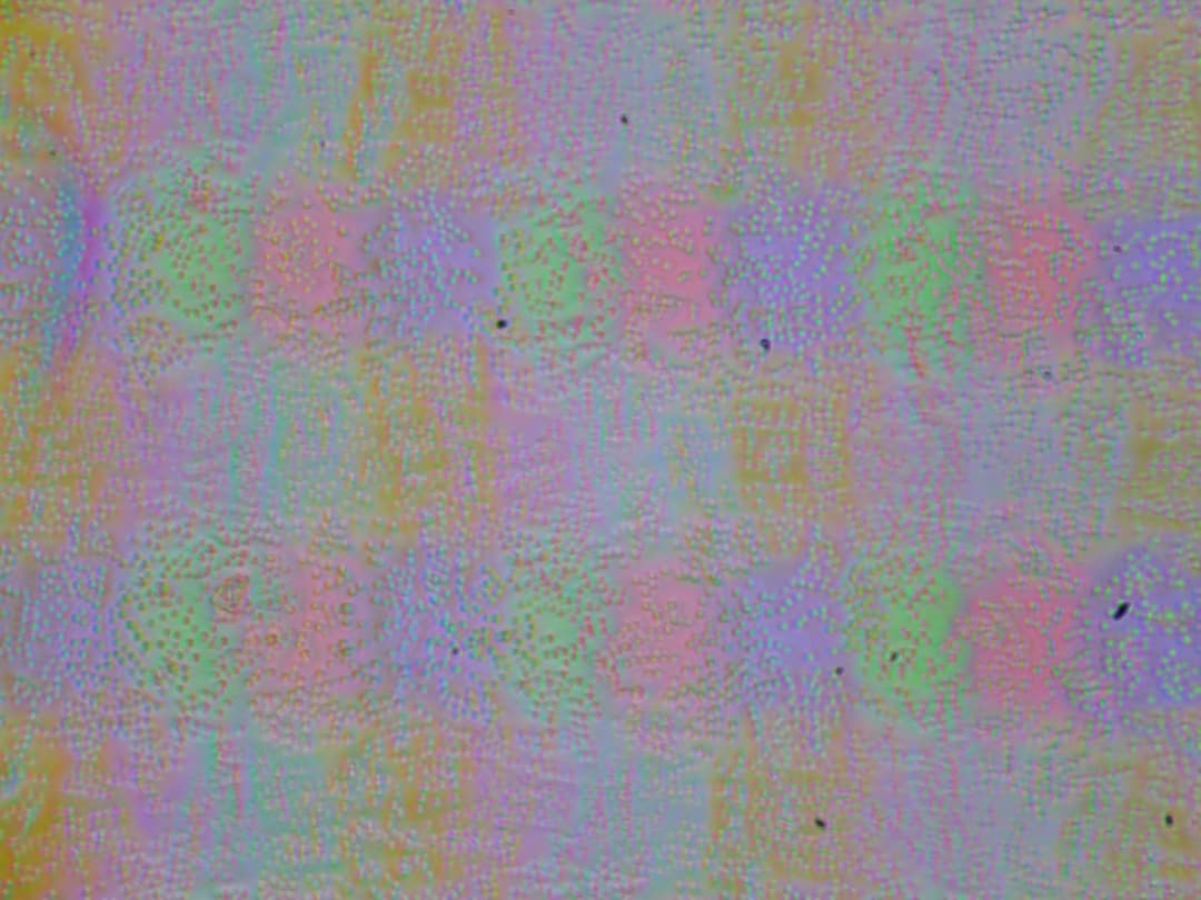Зерно этих дефектов в несколько раз меньше размеров субпикселей (масштаб этих двух фотографий одинаковый), поэтому фокусировка на микродефектах и «перескок» фокуса по субпикселям при изменении угла зрения выражены слабо, из-за этого практически нет и «кристаллического» эффекта.