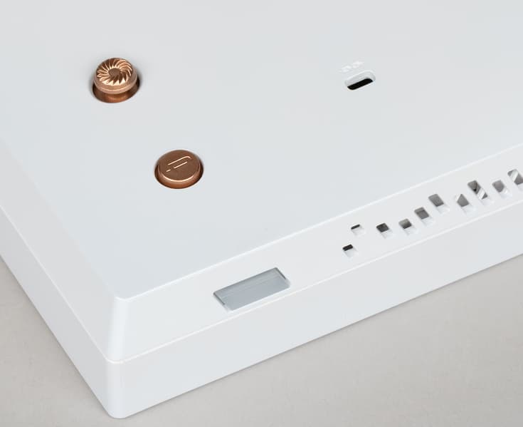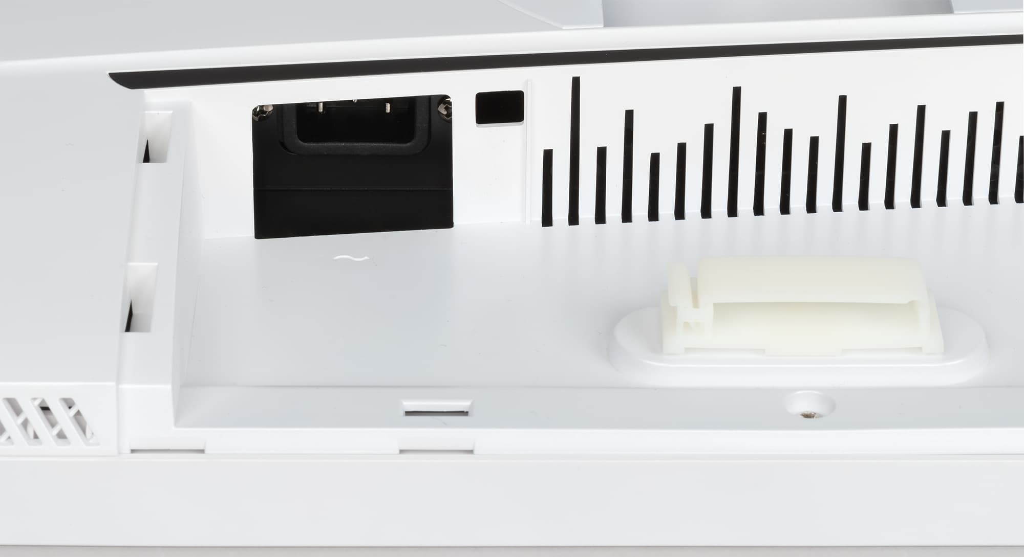 Вентиляционные решетки присутствуют на скошенных назад гранях сверху и снизу, а также в нише с разъемами.