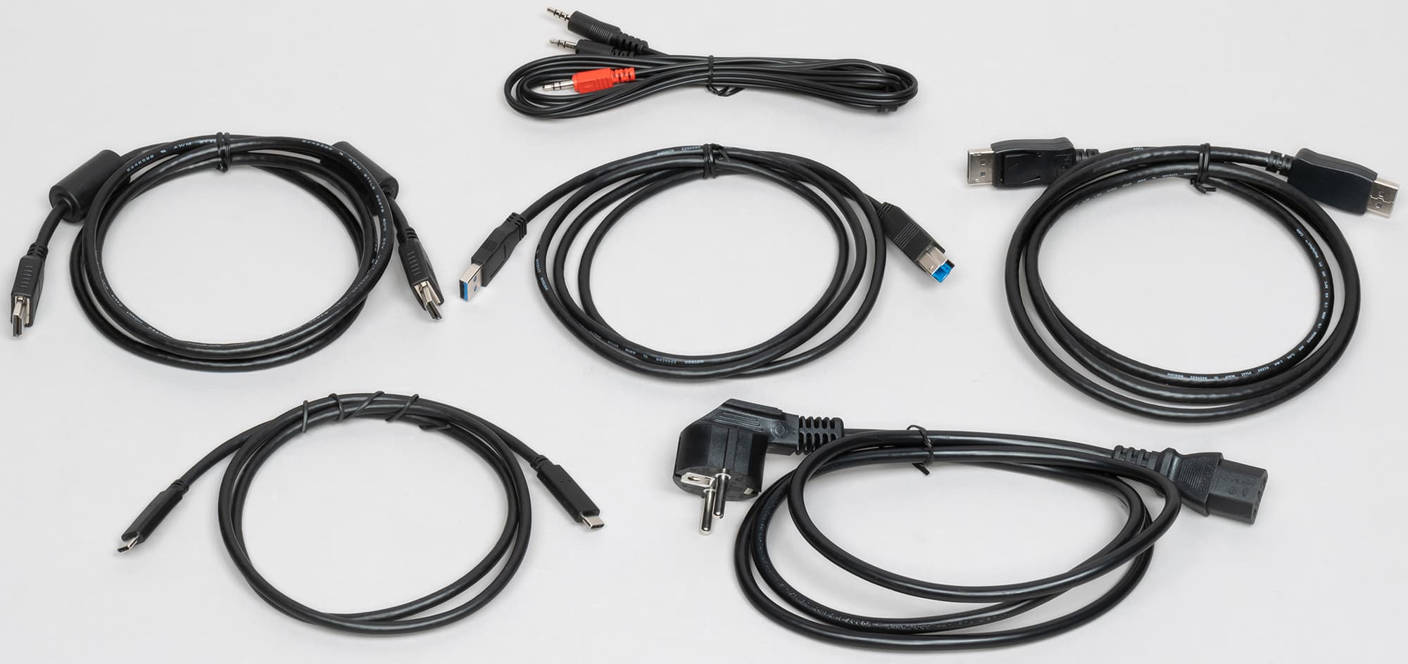 Монитор оснащен встроенным блоком питания. В большинстве случаев это удобно, и только при выходе из строя блока питания внешний БП было бы менять/ремонтировать удобнее и дешевле. Все комплектные кабели, к сожалению, черного цвета, что не сочетается с цветом корпуса и подставки монитора.