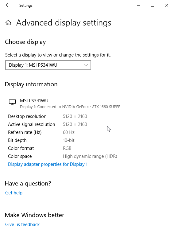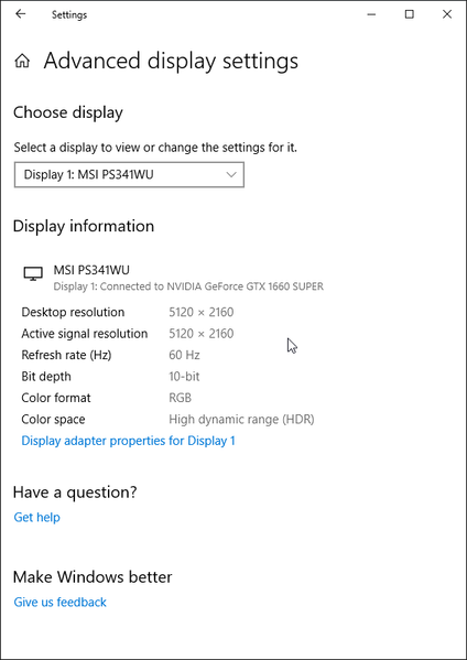 Вывод в режиме HDR мы тестировали при подключении к компьютеру по DisplayPort. В этом случае при максимальных разрешении и частоте обновления поддерживаются 10 бит на цвет (кодирование RGB).