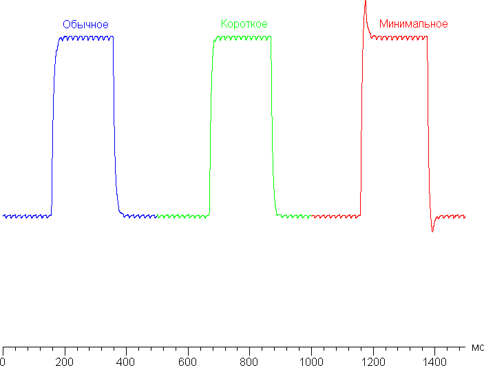 Ниже приведены графики полутонового перехода между оттенками 40% и 60% и обратно при различных значениях настройки Время отклика (по вертикали — яркость, по горизонтали — время, для наглядности графики выстроены последовательно):