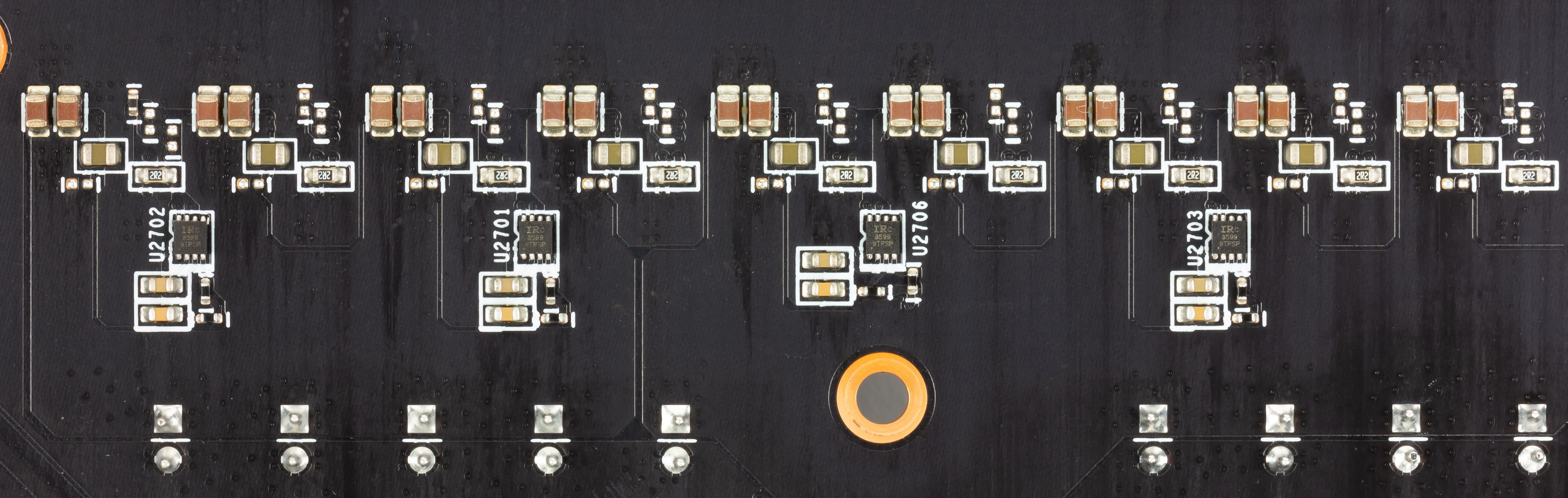По-видимому, контроллер управляет пятью фазами, и схема питания ядра — например, 4+1, из которых 4 имеют удвоители, в результате имеем 8+1 = 9 сборок типа DrMos.