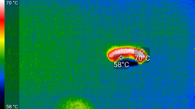 Максимальный нагрев — центральный участок PCB около GPU и силовых преобразователей.