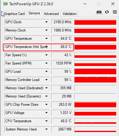 Температура по показаниям этих датчиков может значительно превышать значения, к которым мы привыкли, оценивая нагрев GPU под нагрузкой. Дело в том, что Hot Spot (Junction) — датчик максимального нагрева графического ядра. Температура по его показаниям может достигать 110 °C, и это безопасно! Драйвер будет продолжать повышать частоту работы блоков GPU до того момента, пока показания датчика Hot Spot не подберутся вплотную к этому критическому значению. Таким образом достигается максимум того, что может обеспечить кристалл графического процессора в текущих условиях. Конечно же, конкретный экземпляр чипа, а также тип/вид, эффективность и режим работы СО, плюс загрузка GPU будут влиять на возможность достижения максимума нагрева, а значит, и максимума частот работы. Поэтому у разных карт эти значения могут отличаться, но, еще раз повторим, не надо бояться таких значений температур, GPU вполне нормально их переносят (предел нагрева кремния еще выше). По сети ходят слухи о том, что большая разница между максимальными значениями GPU temperature и Hot Spot temperature якобы свидетельствует о проблемах с графическим чипом (то ли его «переколбасило», то ли плохо припаян). Конечно же, это полная ерунда. Чего только ни напридумывают...