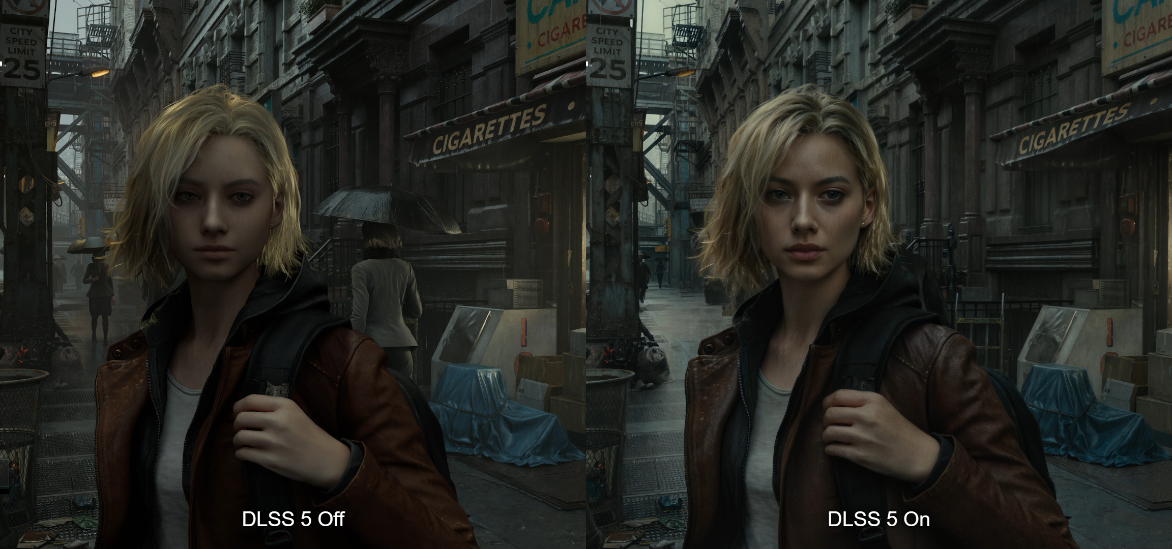 Ах да, еще один момент... На конференции GTC 2026 компания Nvidia также показала кое-что весьма любопытное — ну очень раннюю предварительную версию DLSS 5, которая в очередной раз может перевернуть всё, реализовав уже практически полноценный нейрорендеринг, при работе которого нейросеть добавляет полностью реконструированное освещение и затенение кинематографического качества, фото- и кинореалистичные материалы, делая картинку в целом более реалистичной. При этом, разработчики смогут контролировать некоторые параметры, чтобы нейросеть совсем уж в свои фантазии не убежала, как они это умеют и практикуют. Собственно, поэтому же не всем нравится то, насколько сильно меняет показанная демо-версия DLSS 5 исходное изображение, вот пара примеров: