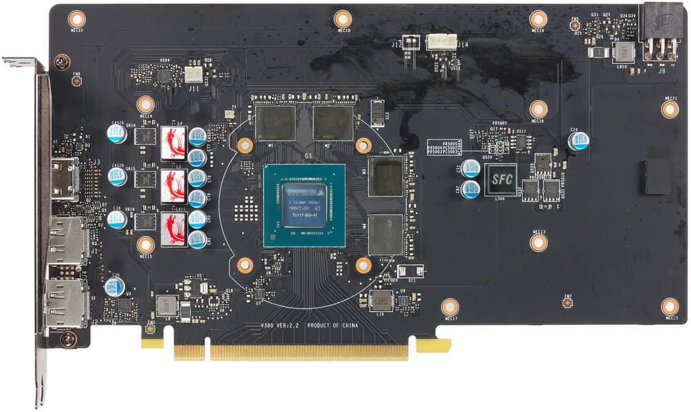 Рассматриваемая сегодня новинка основана на графическом процессоре TU117, также не имеющем RT-ядер и тензорных ядер. Зато этот GPU имеет максимально возможную энергоэффективность в рамках определенного транзисторного бюджета, что важно для современных игр без применения трассировки лучей. Благодаря архитектурным улучшениям, по производительности и энергоэффективности видеокарты семейства Turing превосходят аналогичные GPU из предыдущих семейств компании Nvidia.