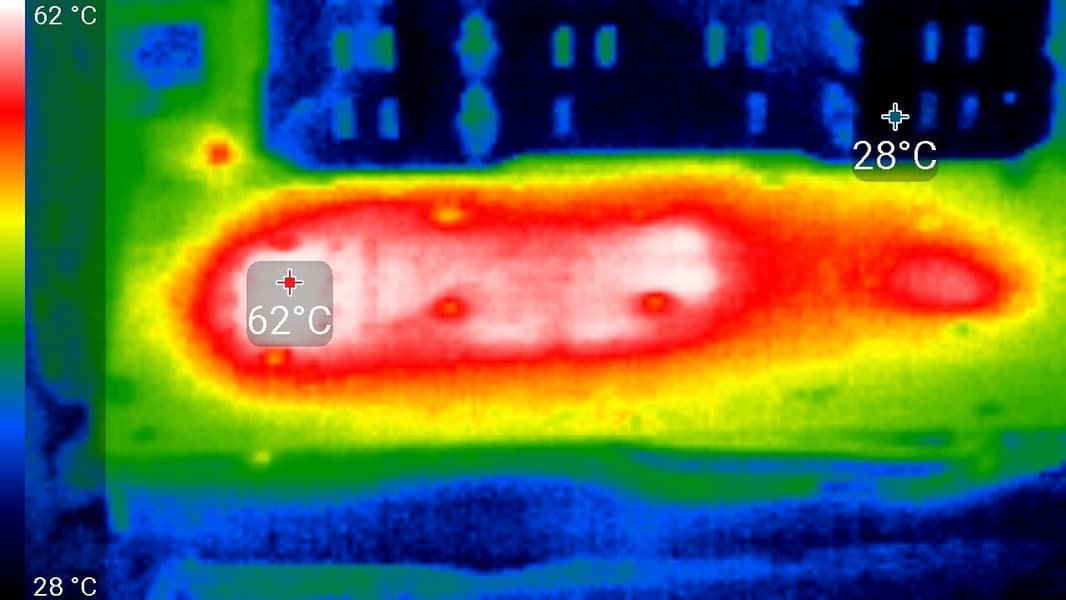 Максимальный нагрев — центральная часть карты.