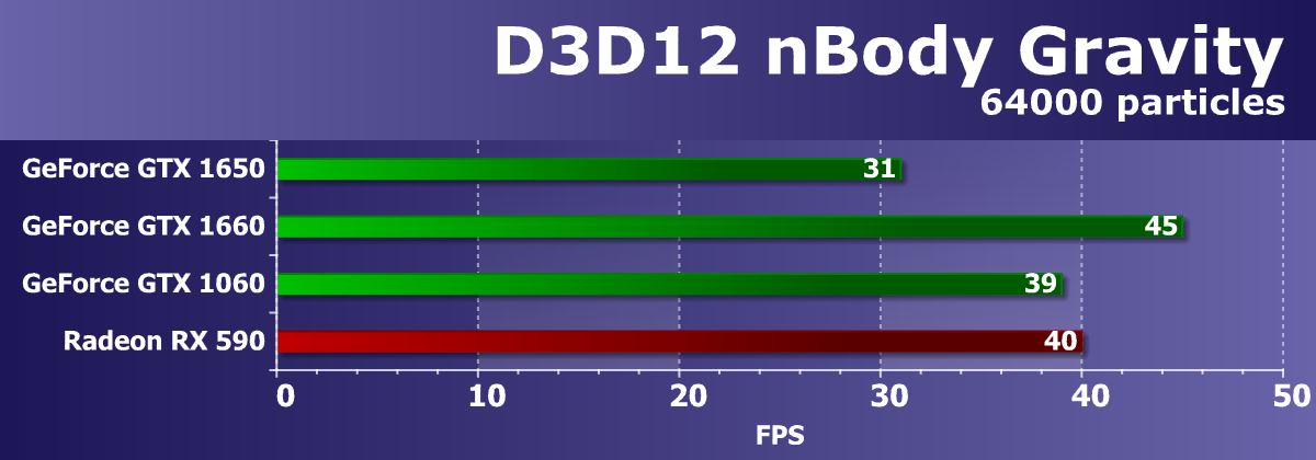 Из более-менее новых бенчмарков мы начали использовать несколько примеров, входящих в DirectX SDK и пакет SDK компании AMD (скомпилированные примеры применения D3D11 и D3D12), а также несколько тестов для измерения производительности трассировки лучей. В качестве полусинтетического теста у нас также используется и популярный 3DMark Time Spy, помогающий определить прирост от асинхронных вычислений.