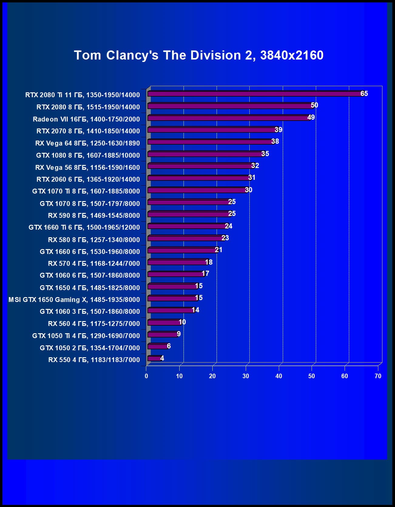 | 10 | GTX 1650 4 ГБ, 1485—1825/8000 | 240 | 300 | 12 500 |