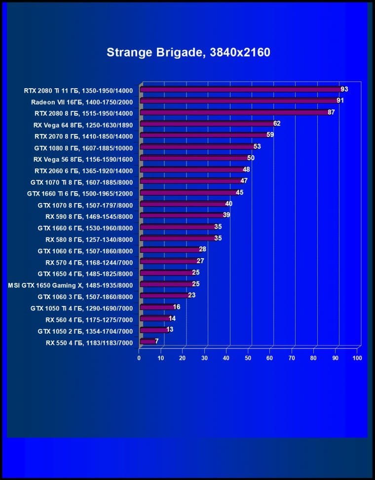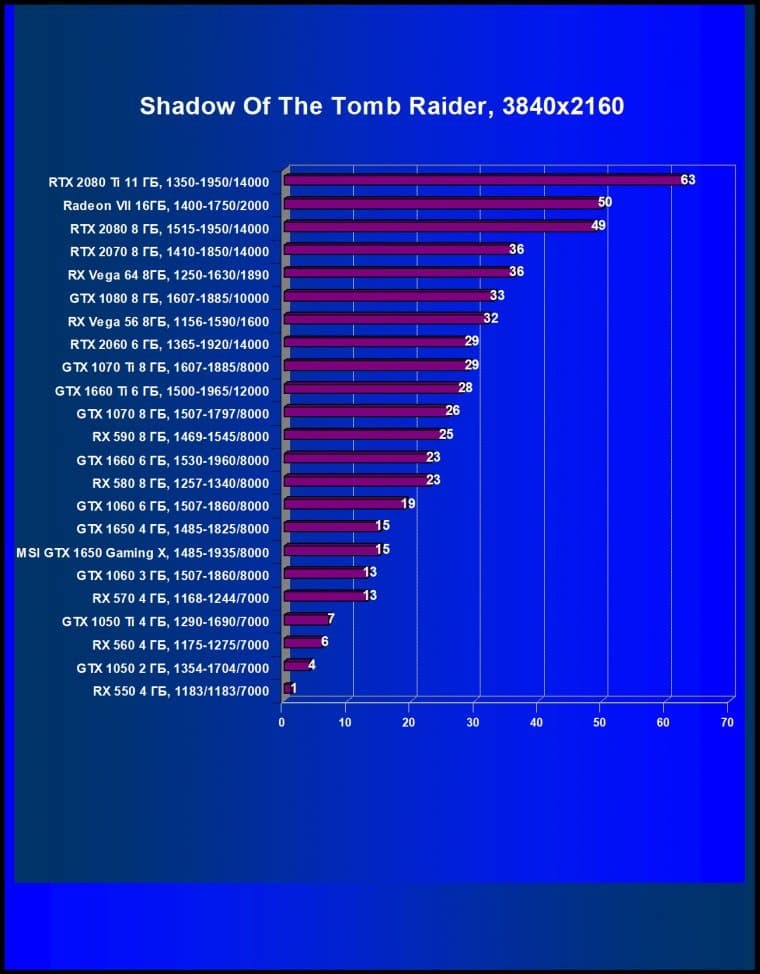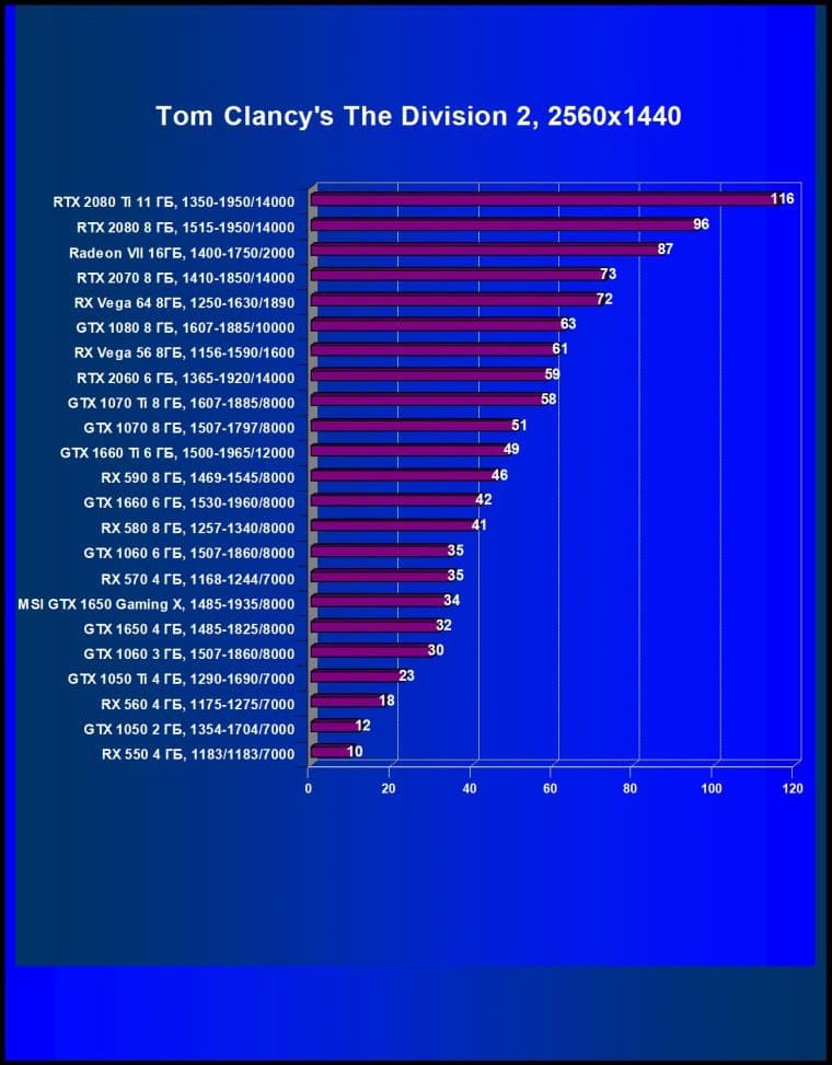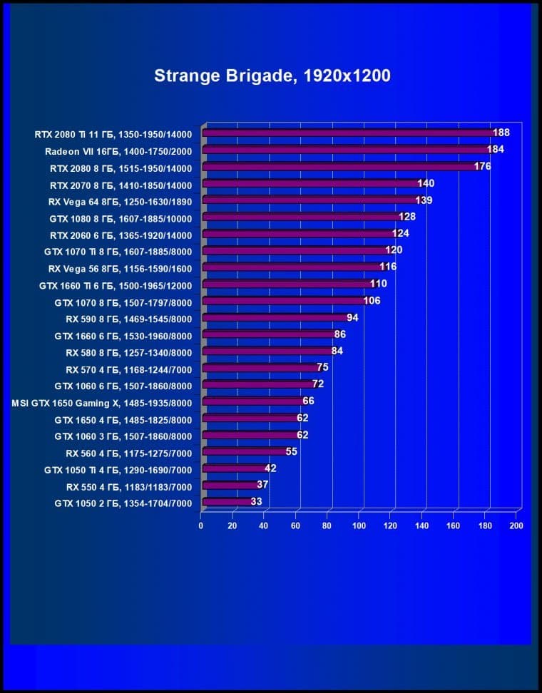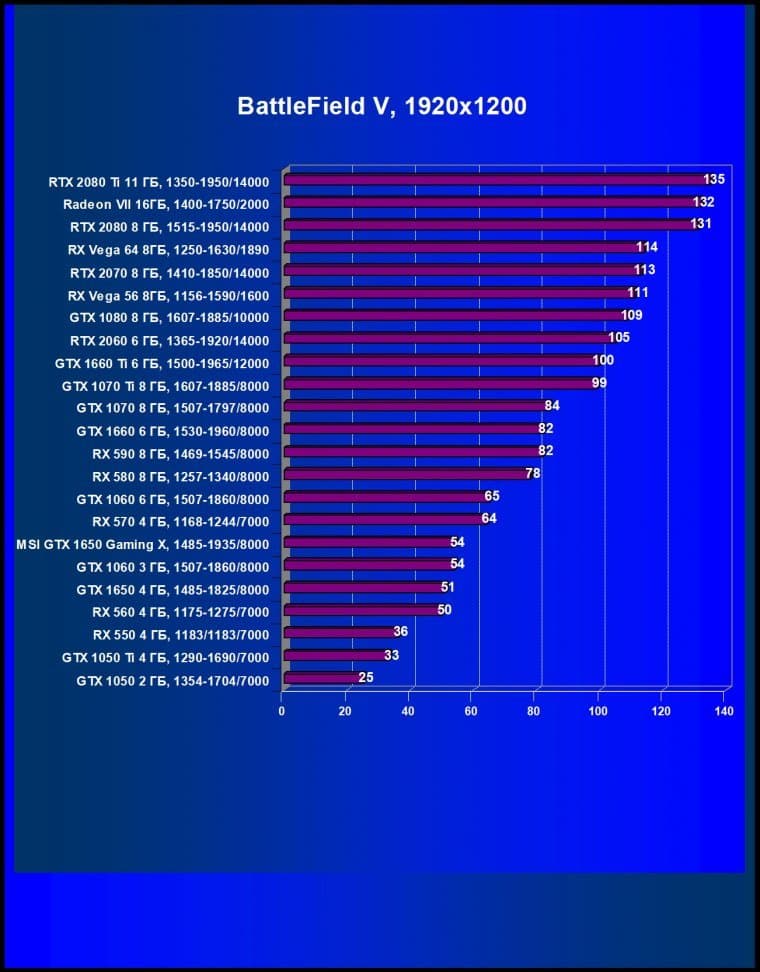 | 08 | MSI GTX 1650 Gaming X, 1485—1935/8000 | 246 | 310 | 12 600 |