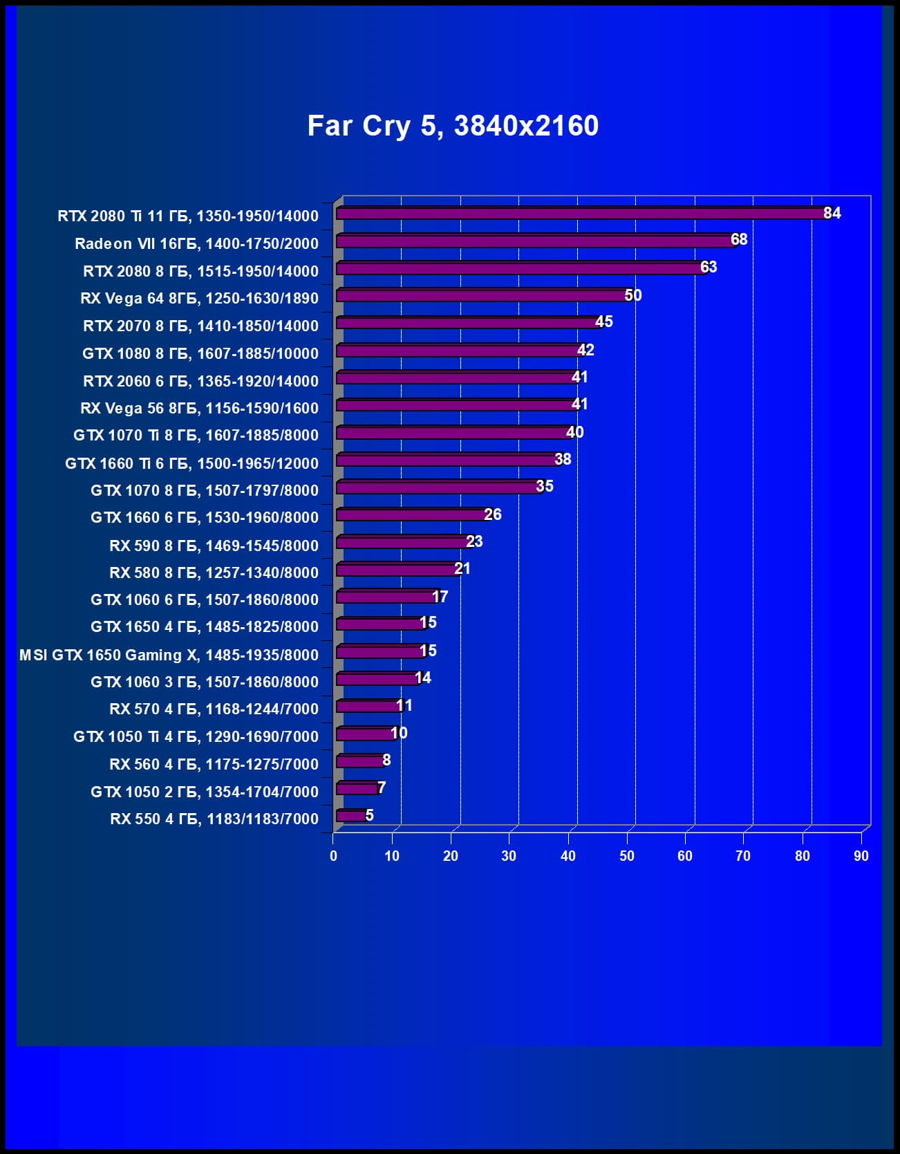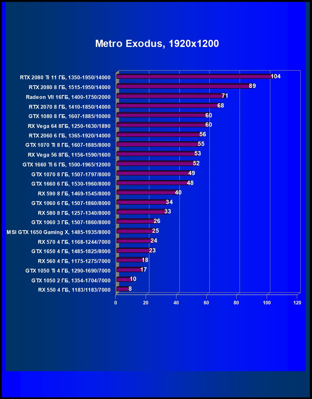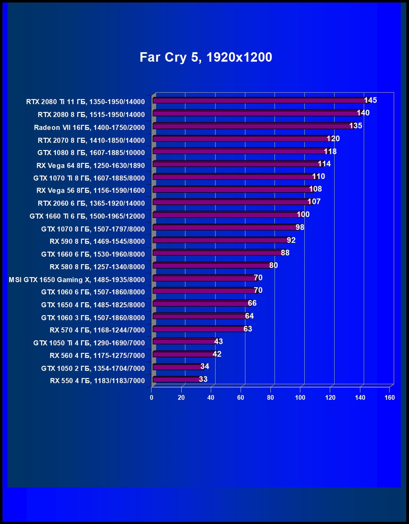 | 08 | MSI GTX 1650 Gaming X, 1485—1935/8000 | 246 | 310 | 12 600 |