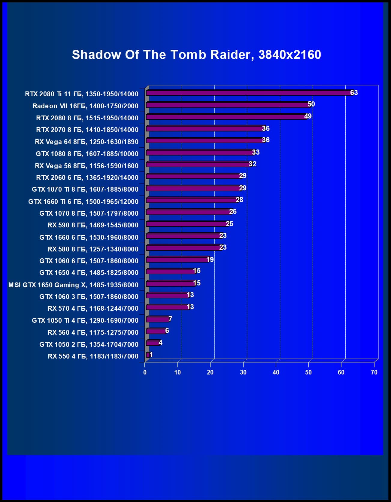 | 19 | GTX 1060 3 ГБ, 1507—1860/8000 | 280 | 215 | 13 000 |