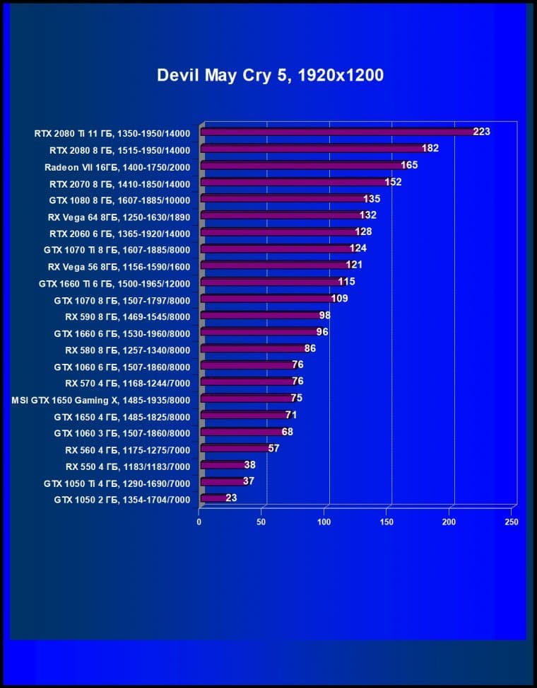 | 17 | MSI GTX 1650 Gaming X, 1485—1935/8000 | 310 | 246 | 12 600 |