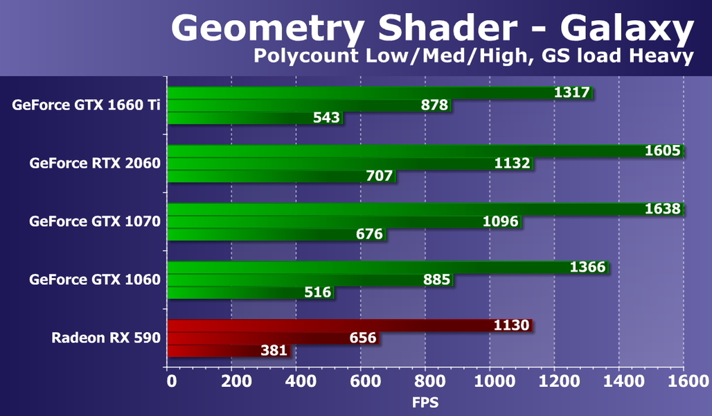 Благодаря всем улучшениям мультипроцессоров Turing, по производительности и энергоэффективности видеокарта на базе TU116 превосходит аналогичные GPU из предыдущих семейств. Новый GPU особенно хорош в современных играх, использующих сложные шейдеры. Модель GeForce GTX 1660 Ti в среднем в 2-3 раза быстрее GeForce GTX 960 и до полутора раз быстрее GeForce GTX 1060 6GB в самых требовательных играх последнего времени.