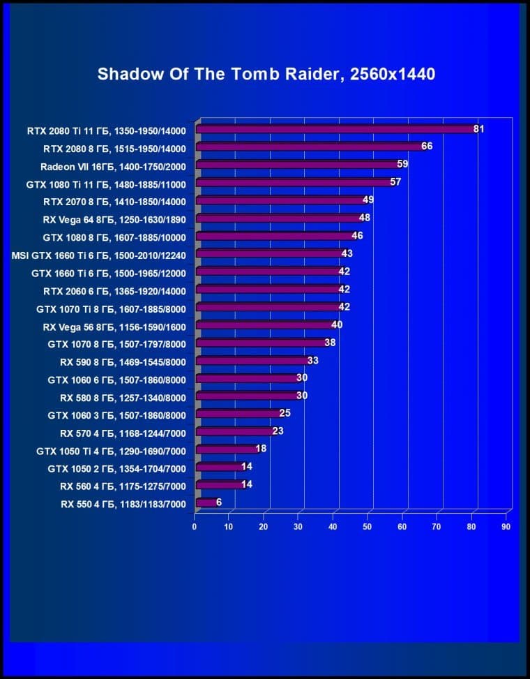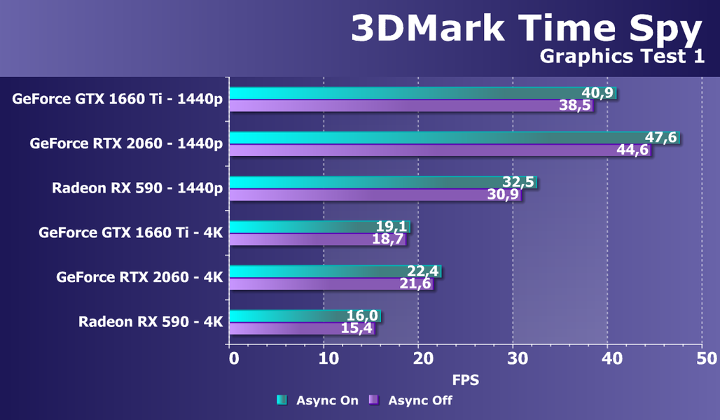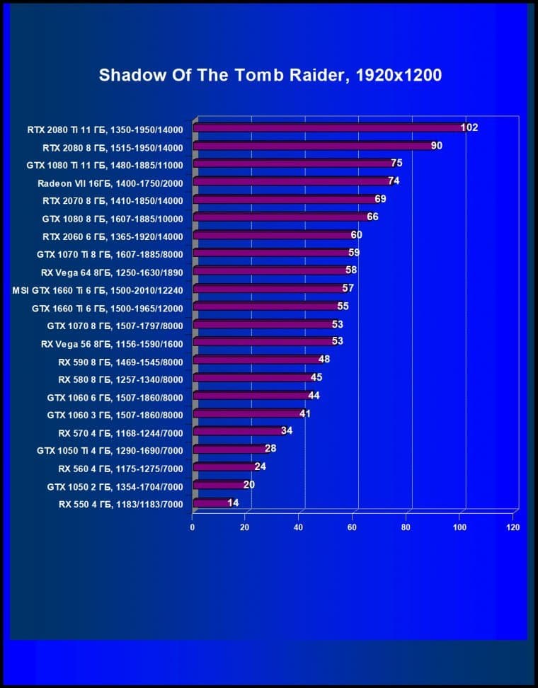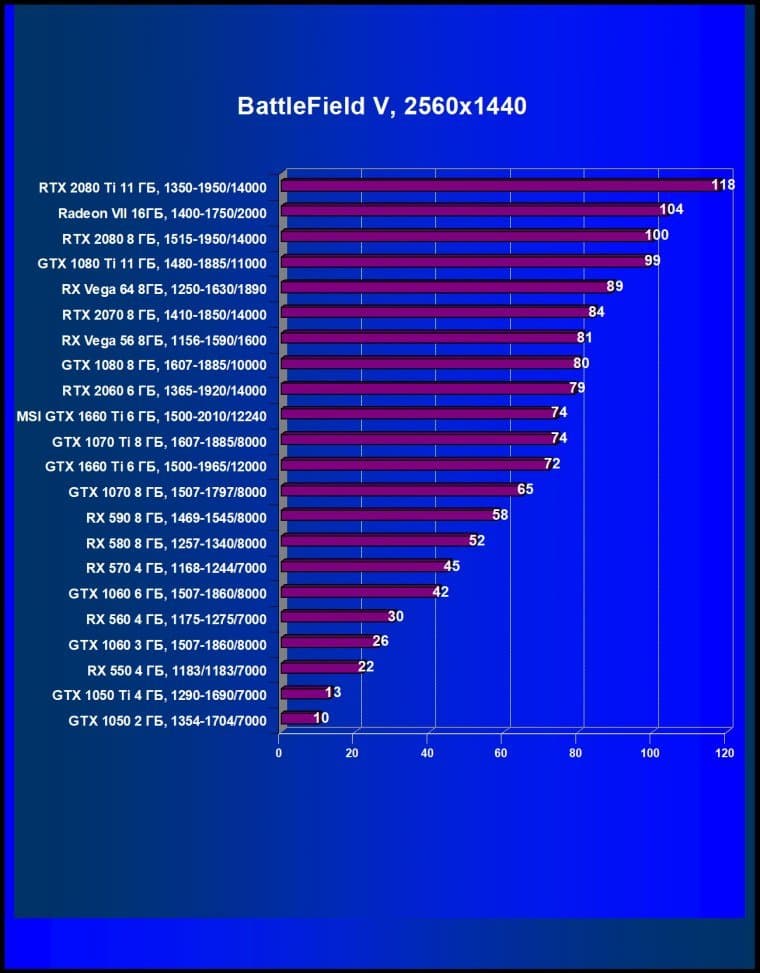 При изучении GeForce RTX 2060 мы уверенно говорили, что RTX 2060 нацелен на разрешение Full HD без каких-либо компромиссов по качеству графики (все настройки на максимум!), а во многих играх он обеспечит хорошую играбельность и в 2.5К. В случае GeForce GTX 1660 Ti мы говорим о полной нацеленности на разрешение Full HD (самое популярное в мире игр на сегодня) при условии максимальных настроек качества, и лишь некоторые не самые требовательные к графике игры продемонстрируют хорошую играбельность на этом ускорителе и в разрешении 2.5К.