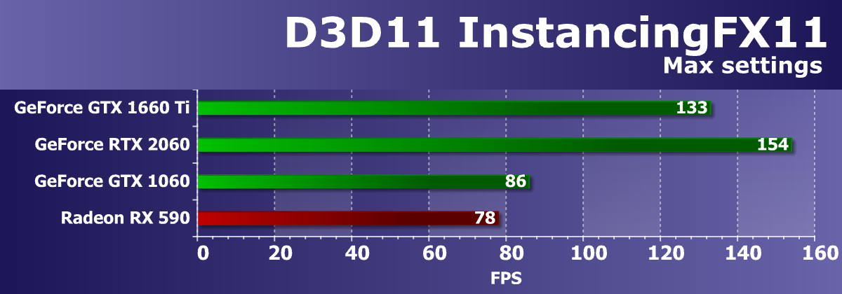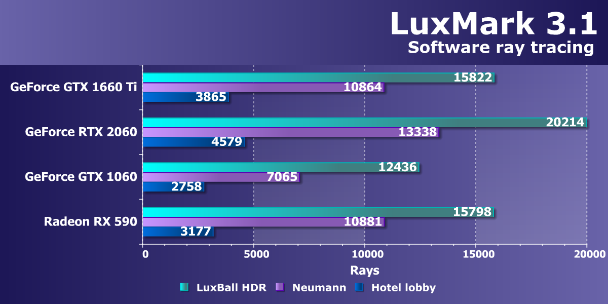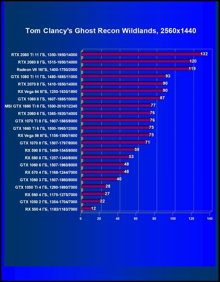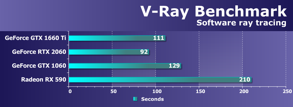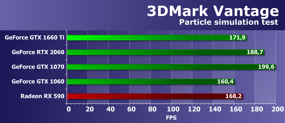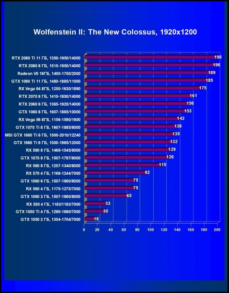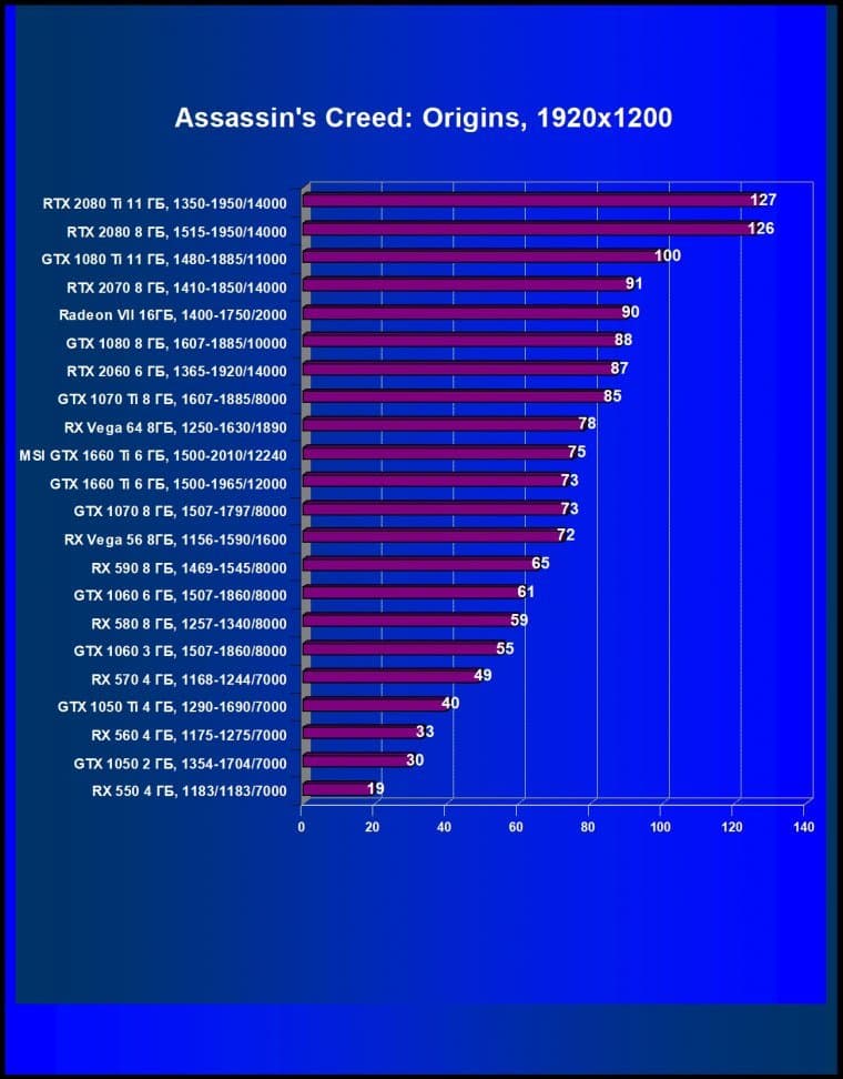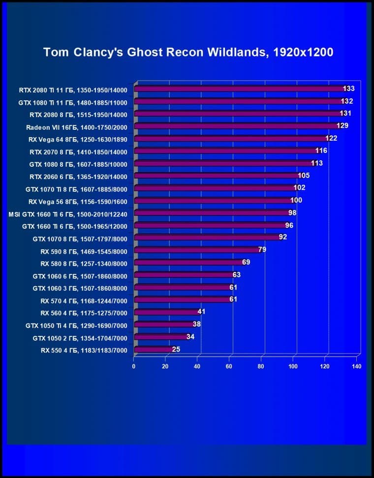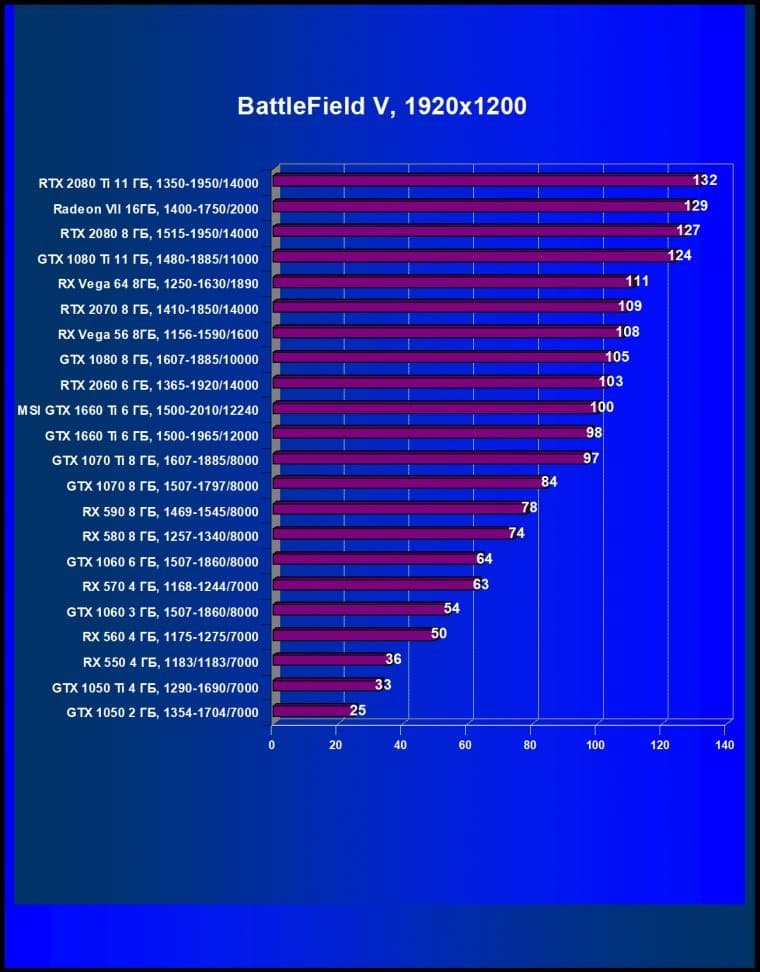Учитывая, что у компании AMD нет четких конкурентов для ценового сегмента 22—25 тысяч рублей, нам пришлось взять и более дорогой Radeon RX Vega 56 (он оказался лишь чуть-чуть быстрее, чем GTX 1660 Ti), и более дешевый Radeon RX 590 (он оказался сильно медленнее). Также GTX 1660 Ti не только с колоссальным отрывом обошел GTX 1060, но и оказался быстрее, чем GTX 1070.