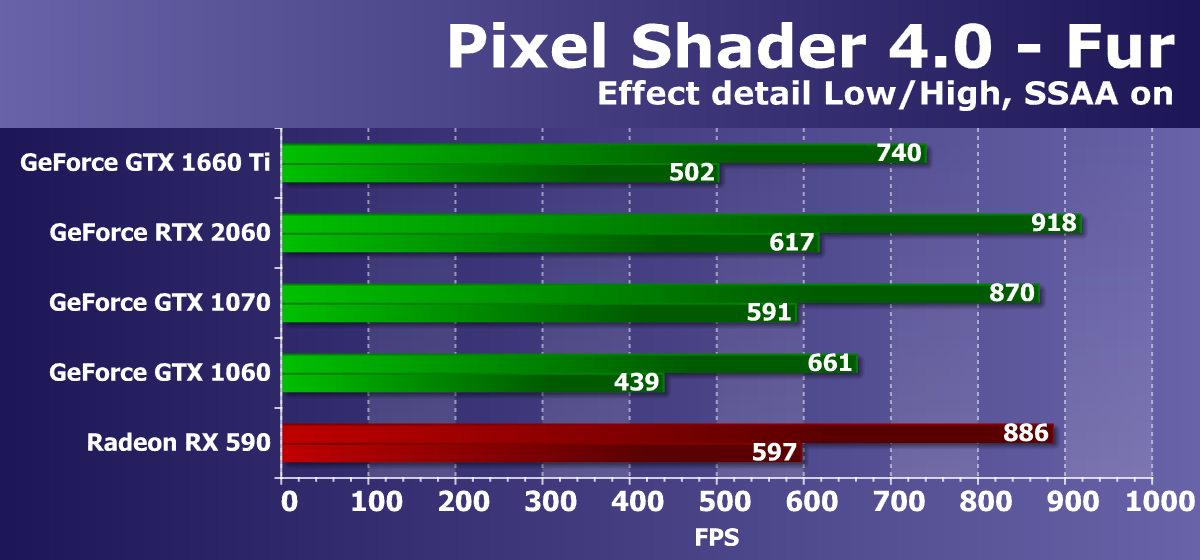 Из ранее активно использовавшихся нами тестов RightMark3D мы оставили лишь несколько самых тяжелых вариантов. Остальные уже изрядно устарели и на столь мощных GPU упираются в различные ограничители, не загружают работой блоки графического процессора и не показывают истинную его производительность. А вот синтетические Feature-тесты из набора 3DMark Vantage мы пока что решили оставить в полном составе, так как заменить их попросту нечем, хотя и они уже устарели.