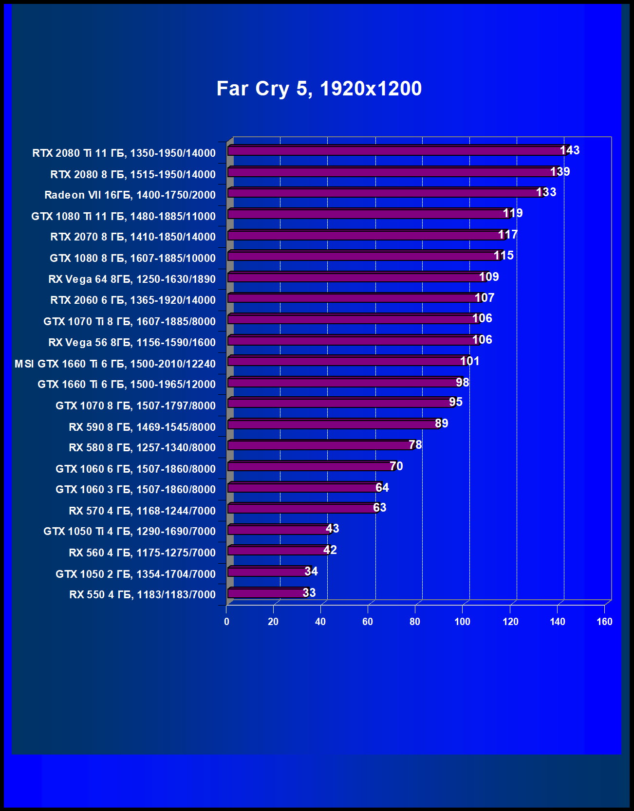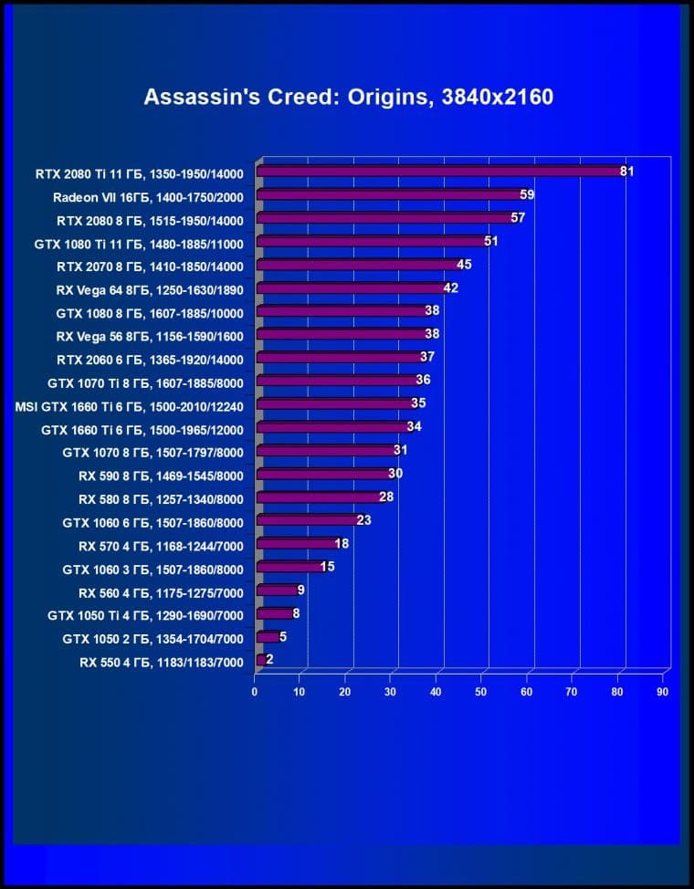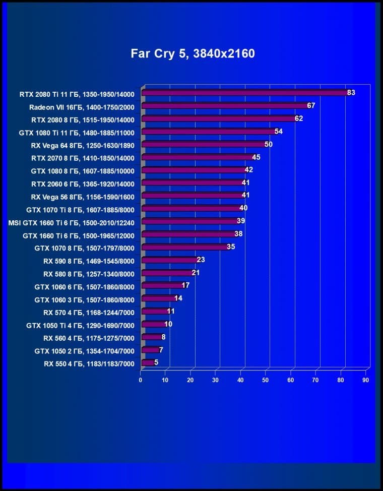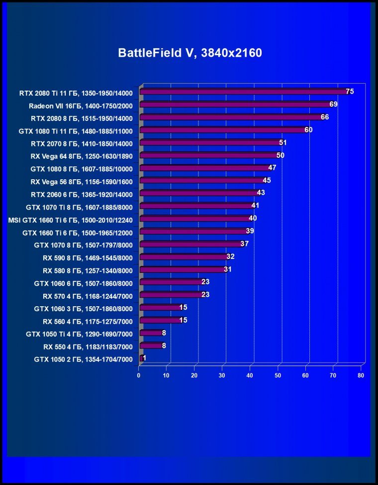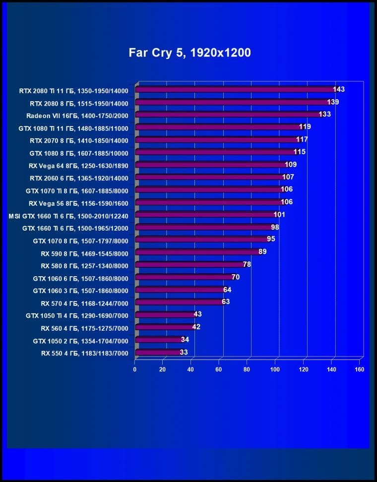 | 05 | MSI GTX 1660 Ti 6 ГБ, 1500—2010/12240 | 247 | 610 | 24 700 |
