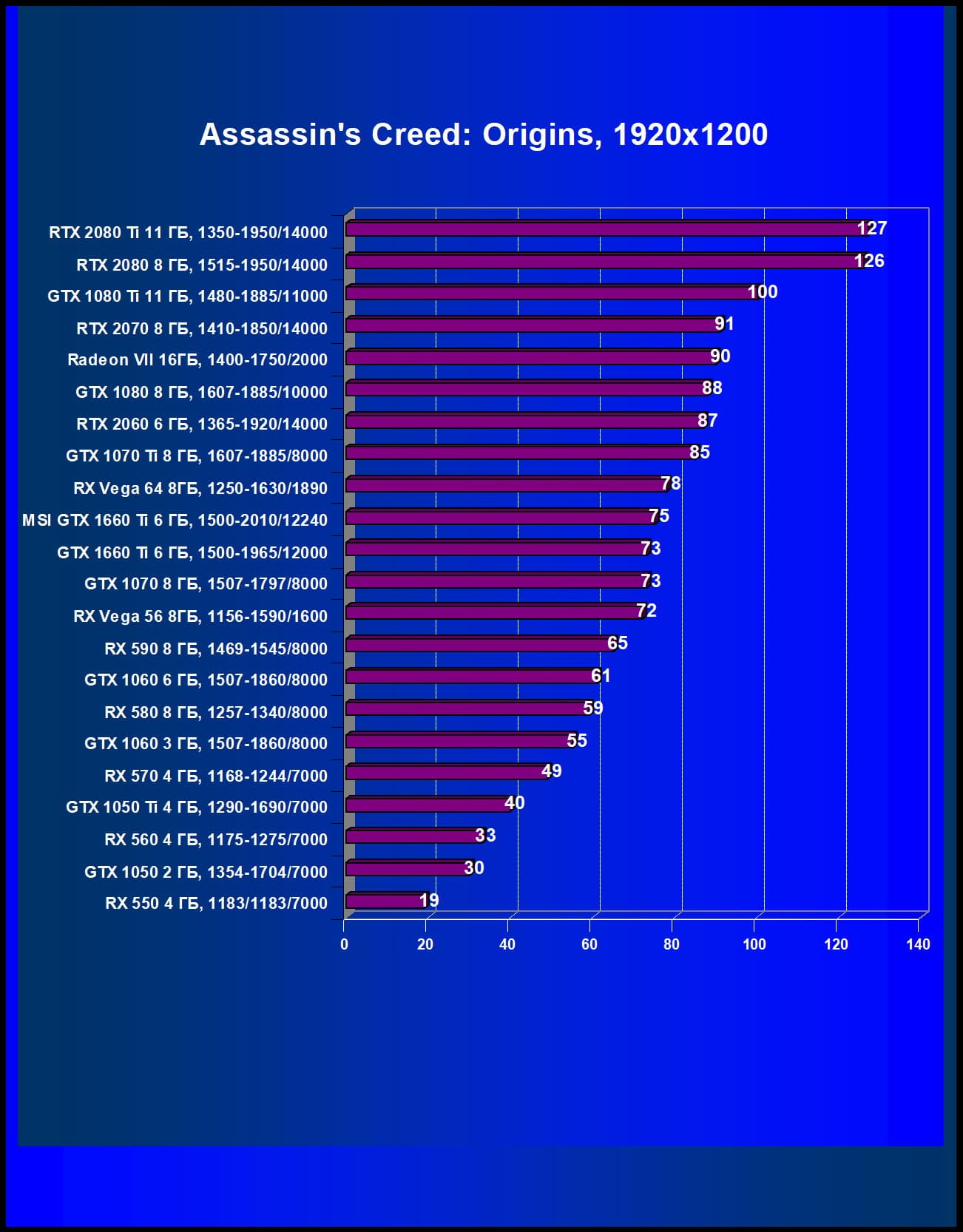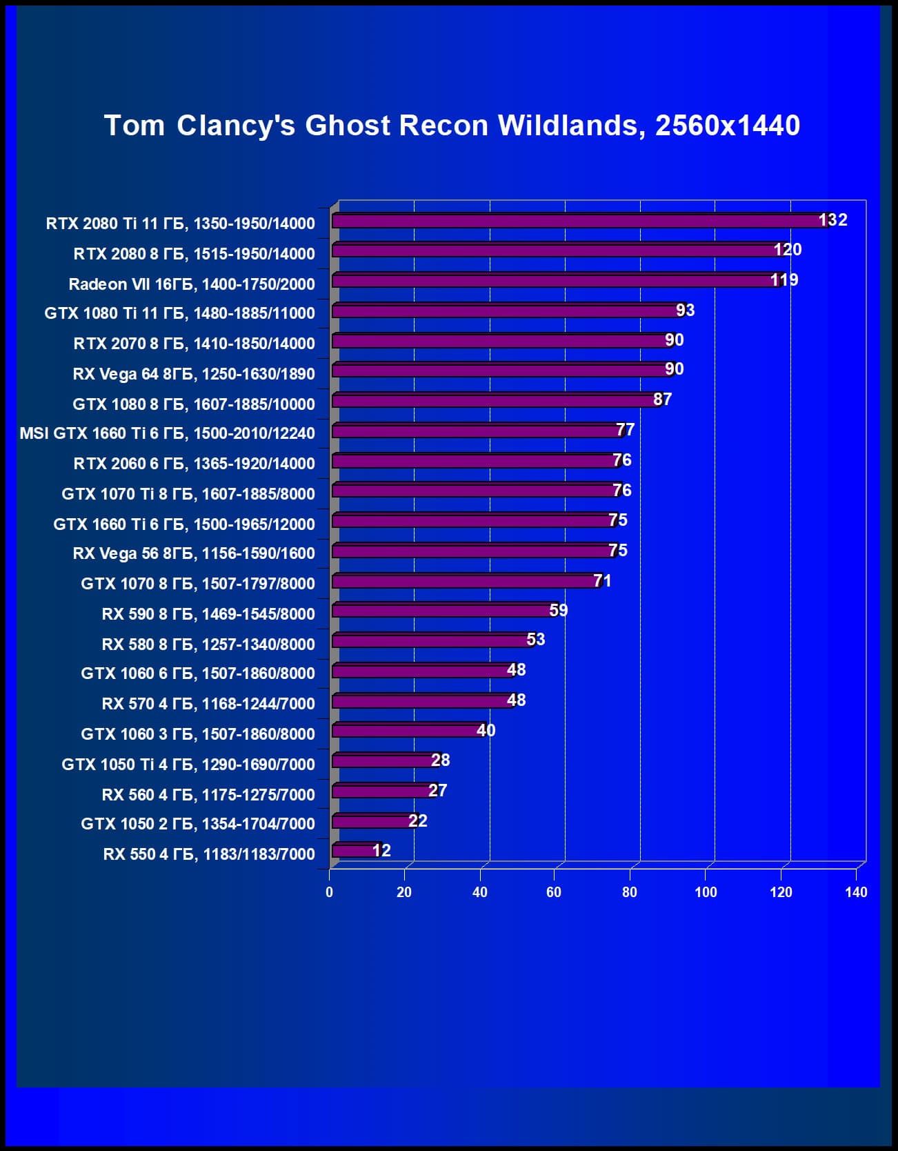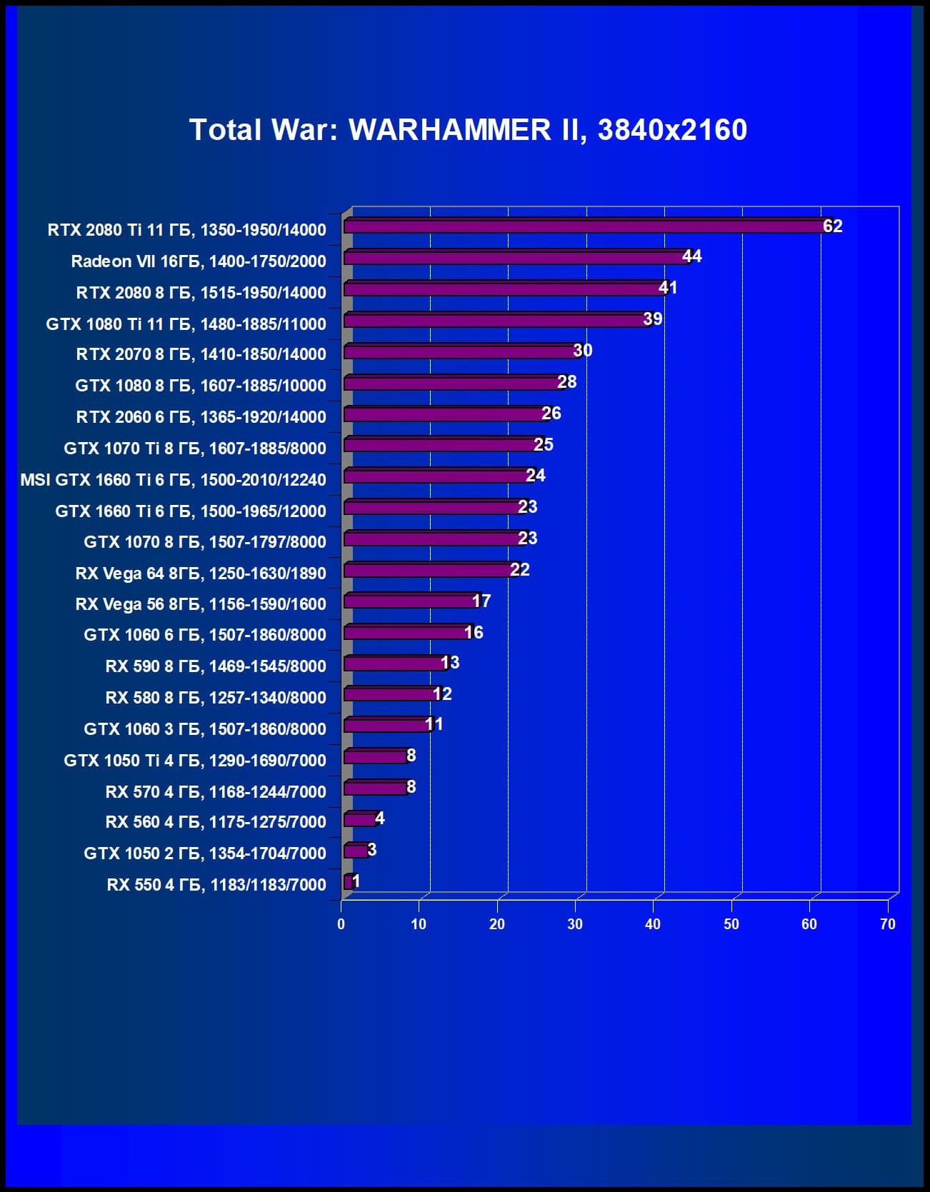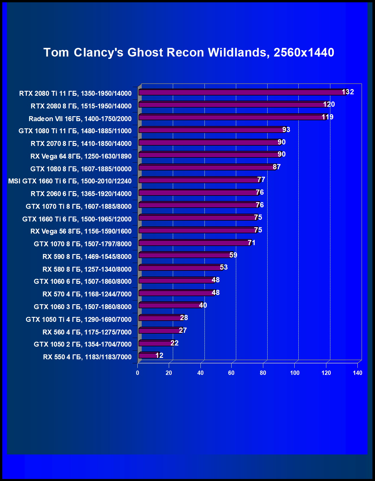 | 05 | MSI GTX 1660 Ti 6 ГБ, 1500—2010/12240 | 247 | 610 | 24 700 |