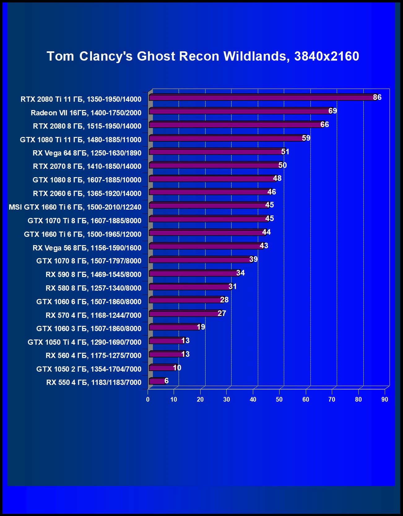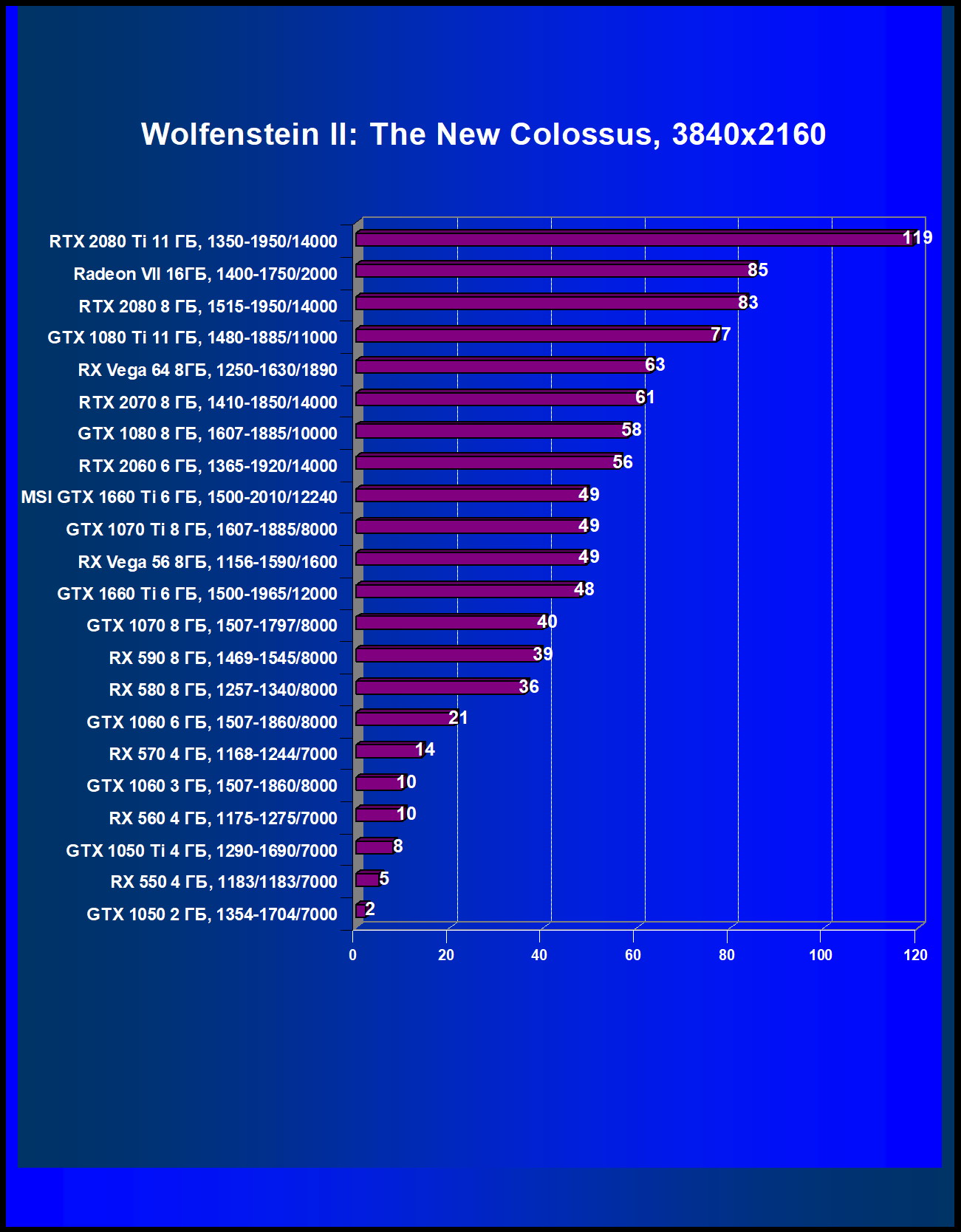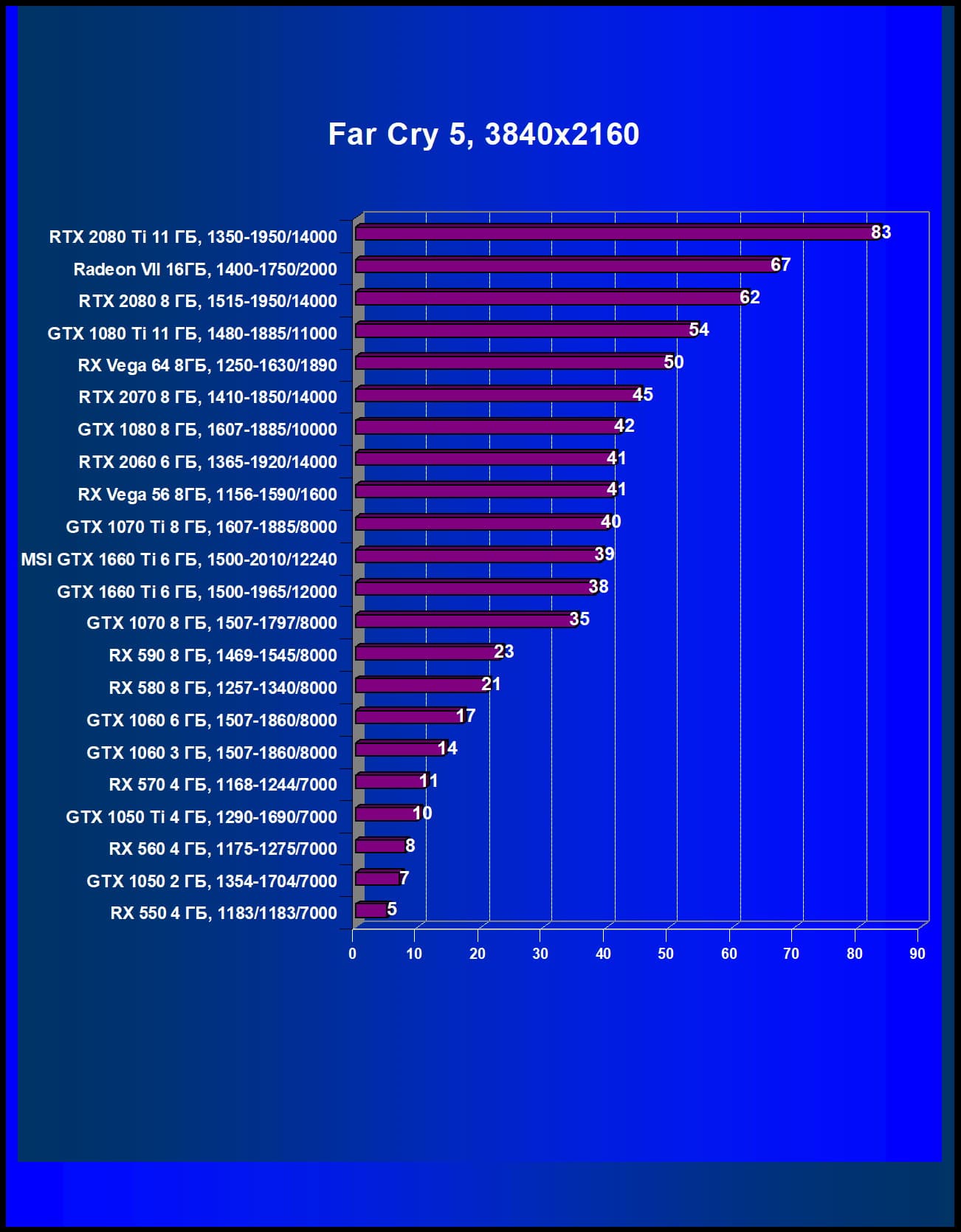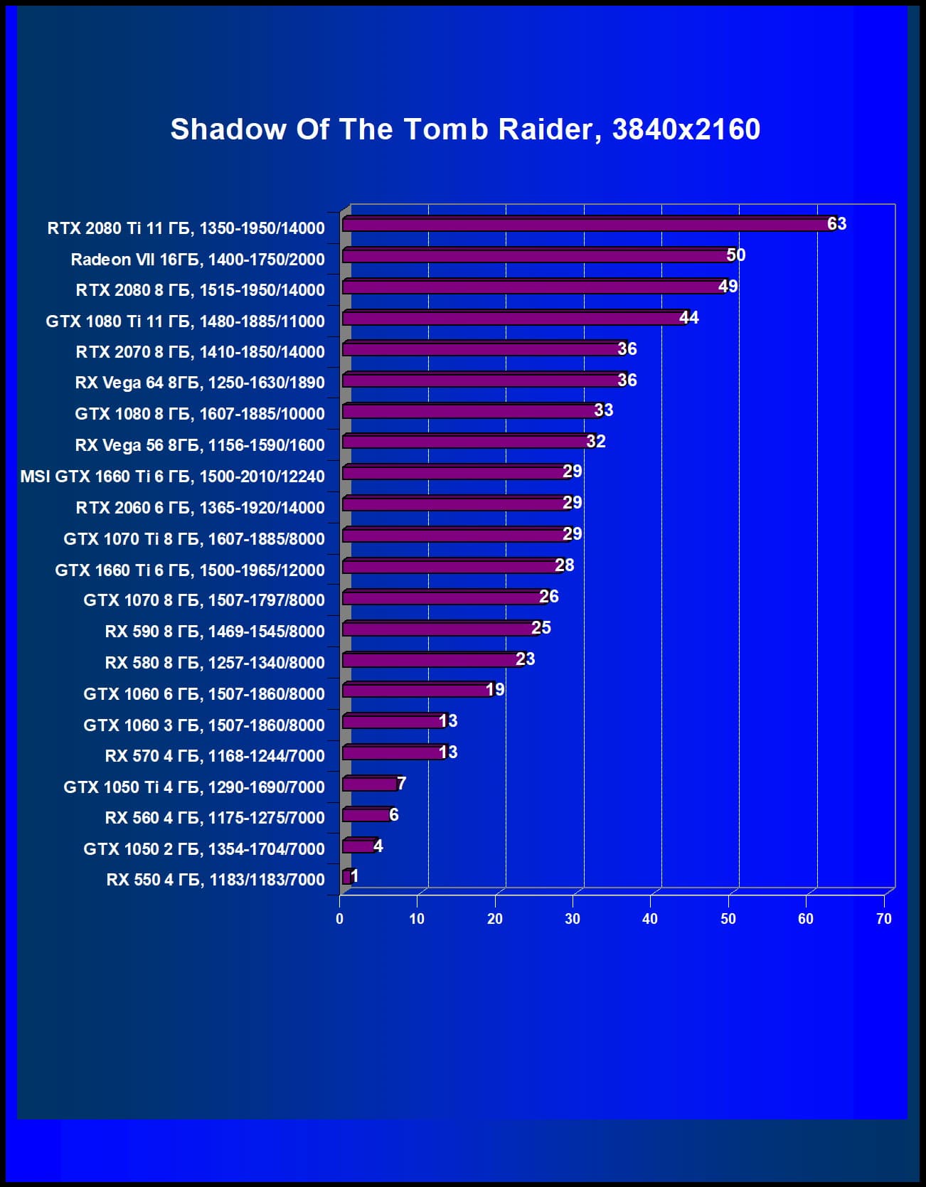 | 05 | MSI GTX 1660 Ti 6 ГБ, 1500—2010/12240 | 247 | 610 | 24 700 |