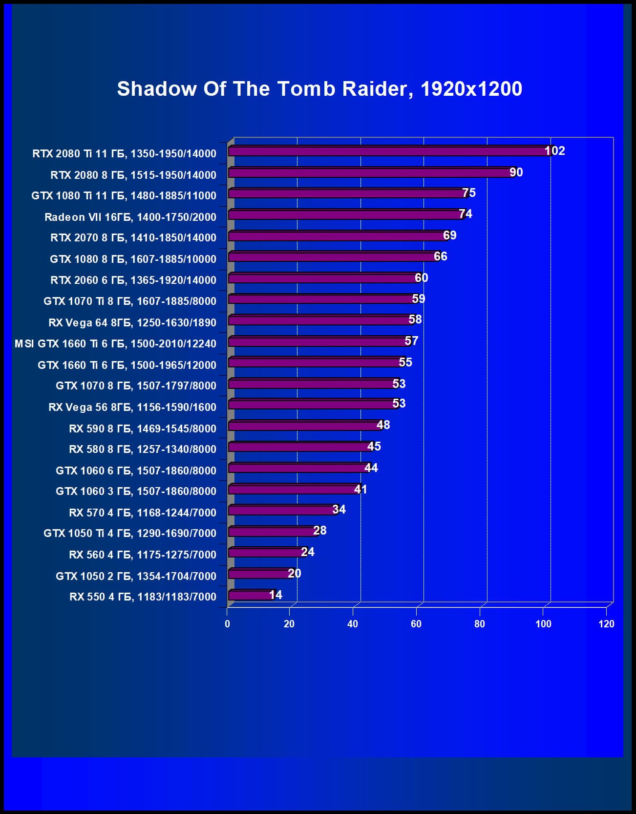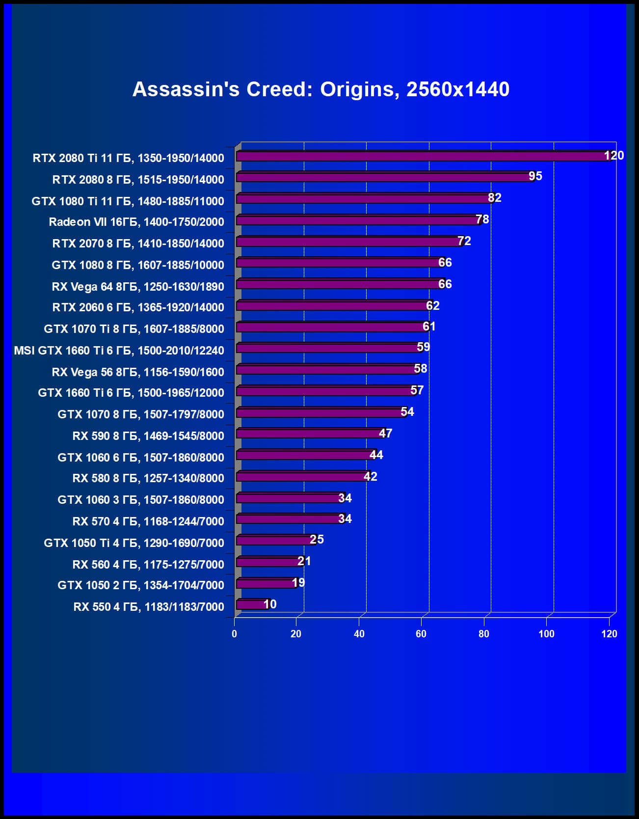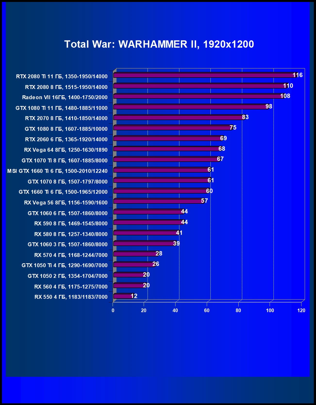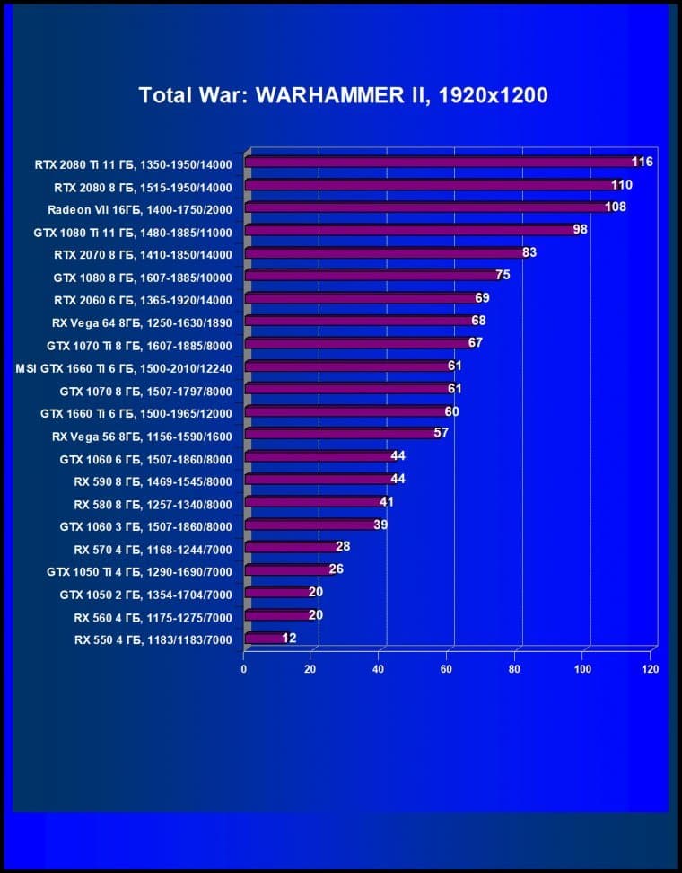 | 12 | GTX 1660 Ti 6 ГБ, 1500—1965/12000 | 600 | 261 | 23 000 |
