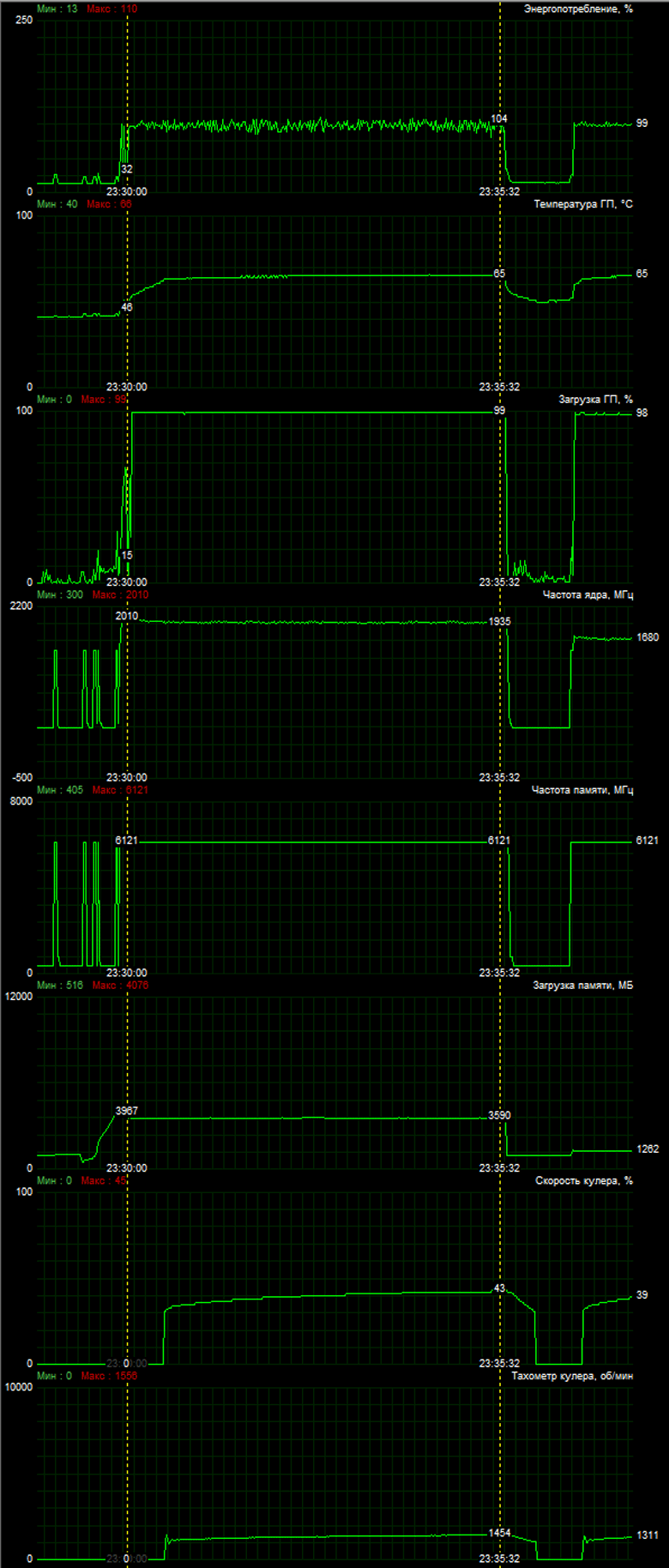 | 02 | GTX 1660 Ti 6 ГБ, 1500—1965/12000 | 261 | 600 | 23 000 |