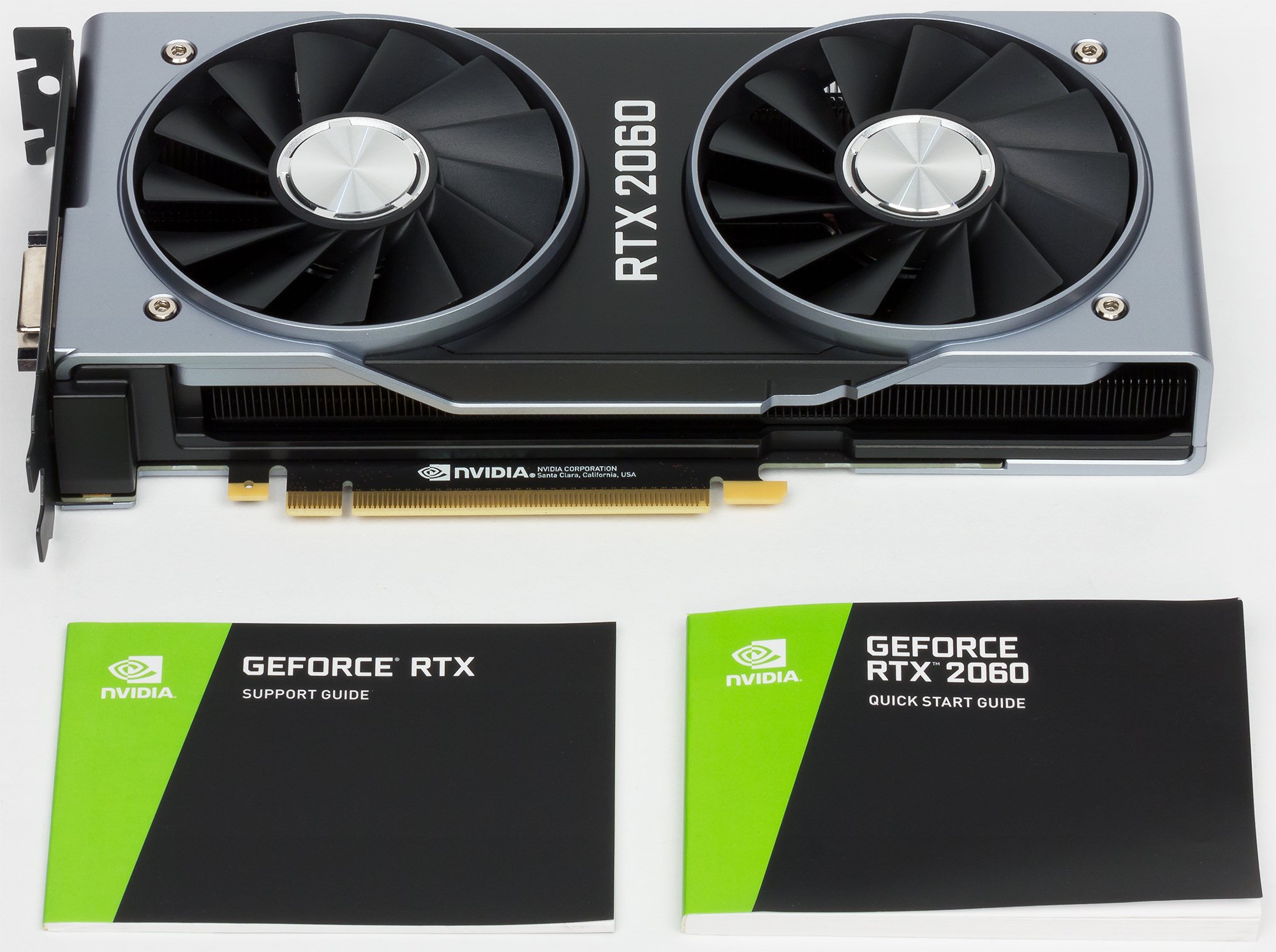 У конкретного протестированного нами видеоускорителя Nvidia GeForce RTX 2060 Founder’s Edition (6 ГБ) можно выделить относительно компактные размеры при сравнительно тихой СО.