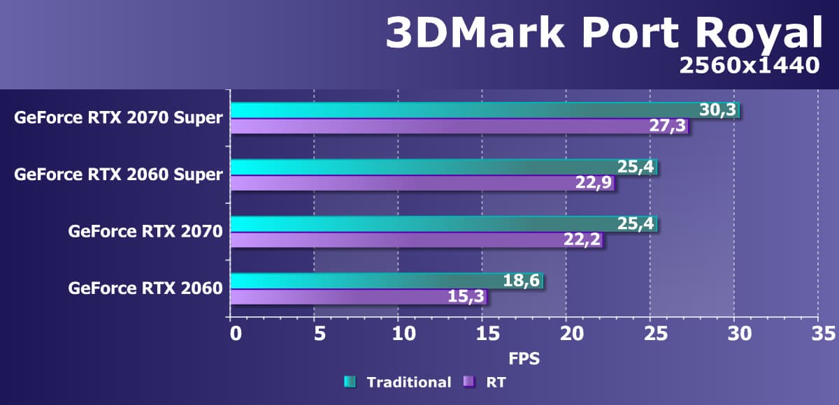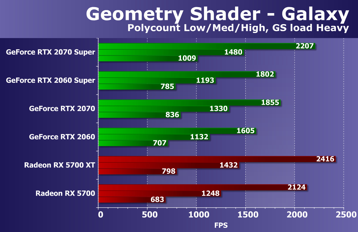 Хорошо видно, что GeForce RTX 2070 Super занял лидирующую позицию в своей группе, опередив даже более дорогой Radeon VII, не говоря уже о Radeon RX 5700 XT.