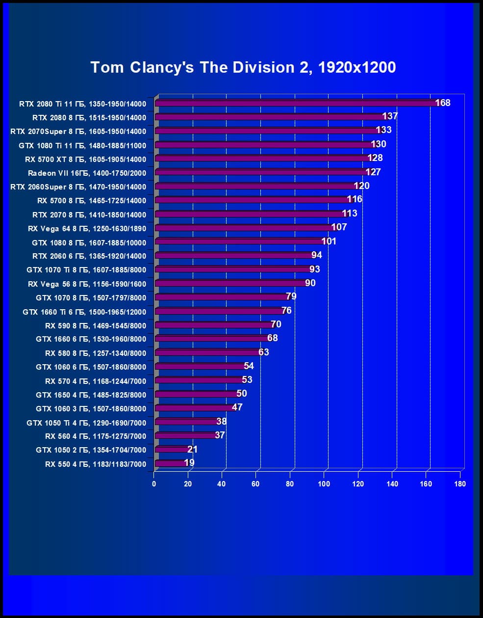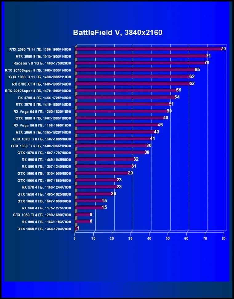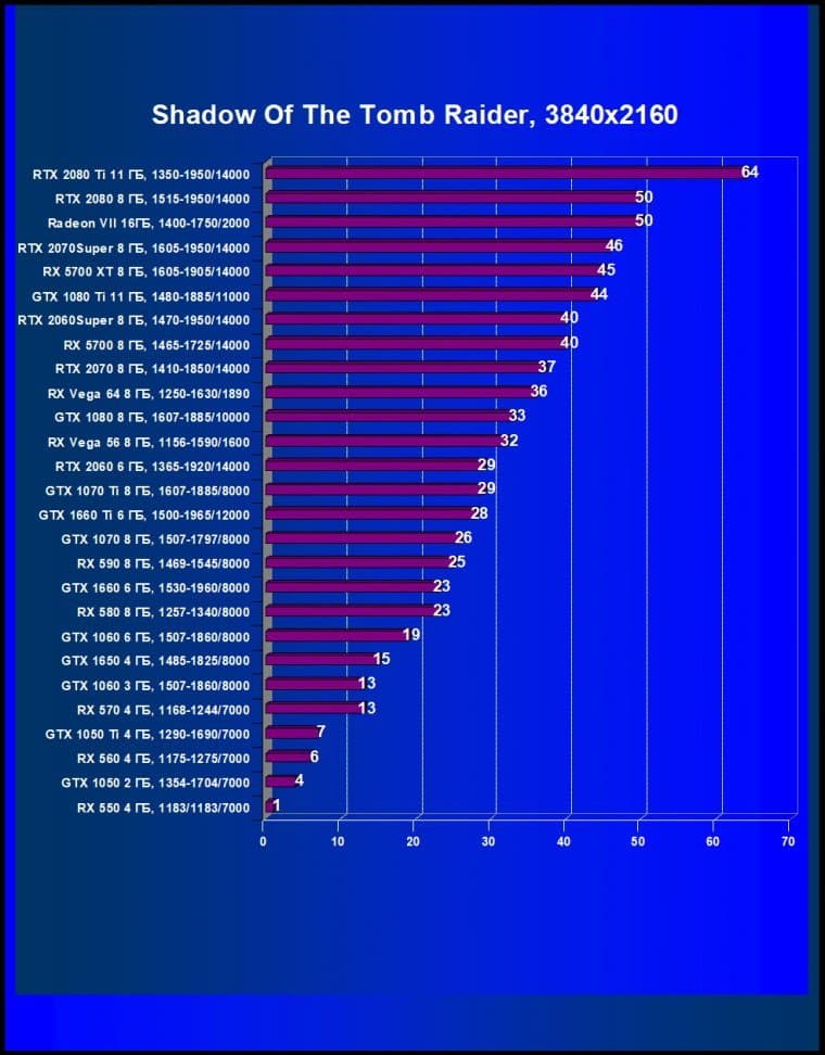 RTX 2060 Super опередил RX Vega 64 (и RTX 2070), и если RTX 2070 Super опередил бывшего флагмана GTX 1080 Ti, то 2060 Super легко одолел GTX 1080.