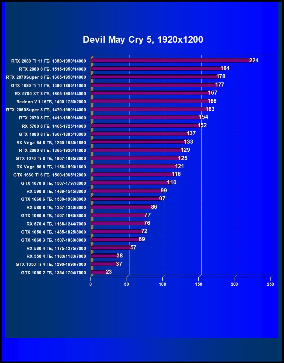 | 05 | RX 5700 XT 8 ГБ, 1605—1905/14000 | 860 | 253 | 34 000 |
